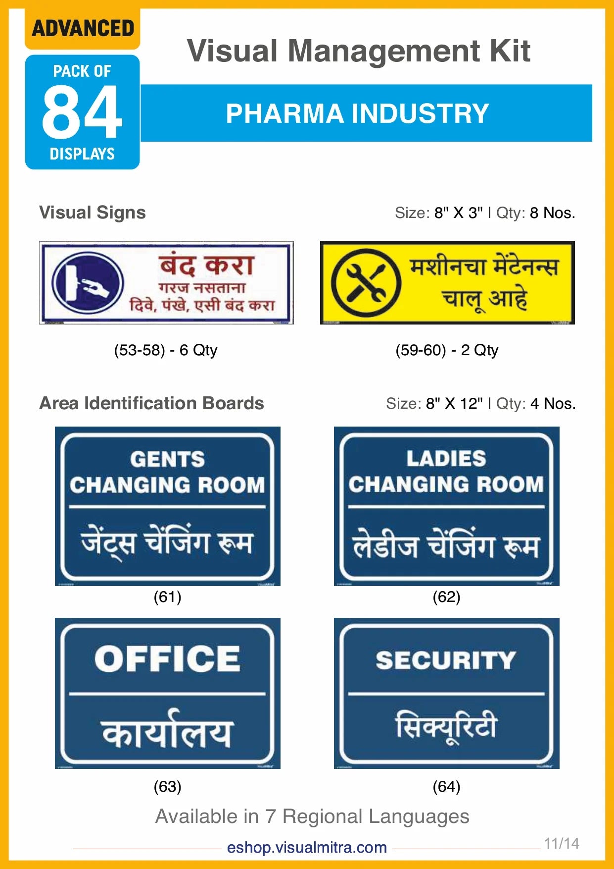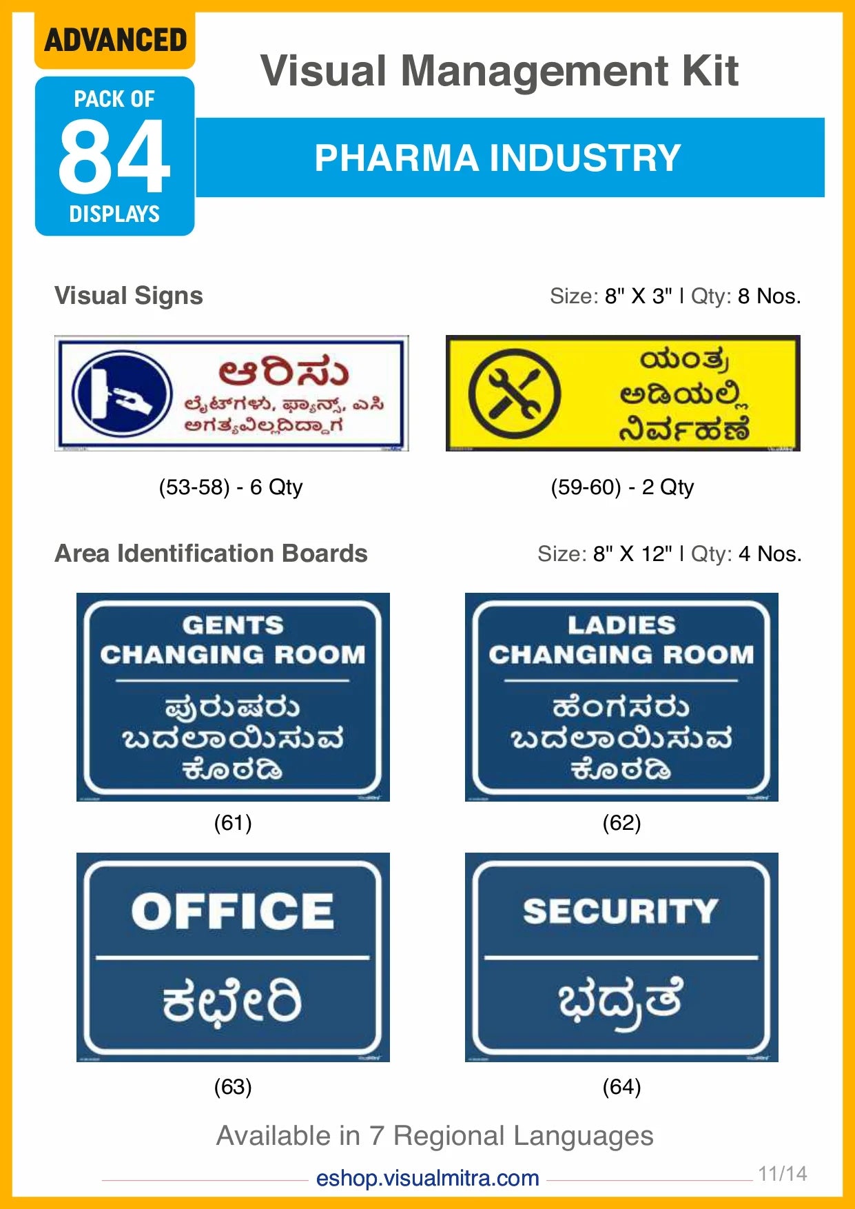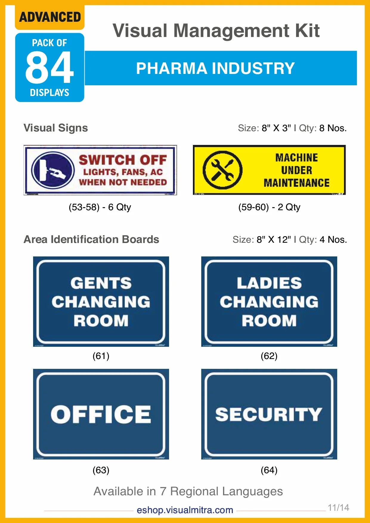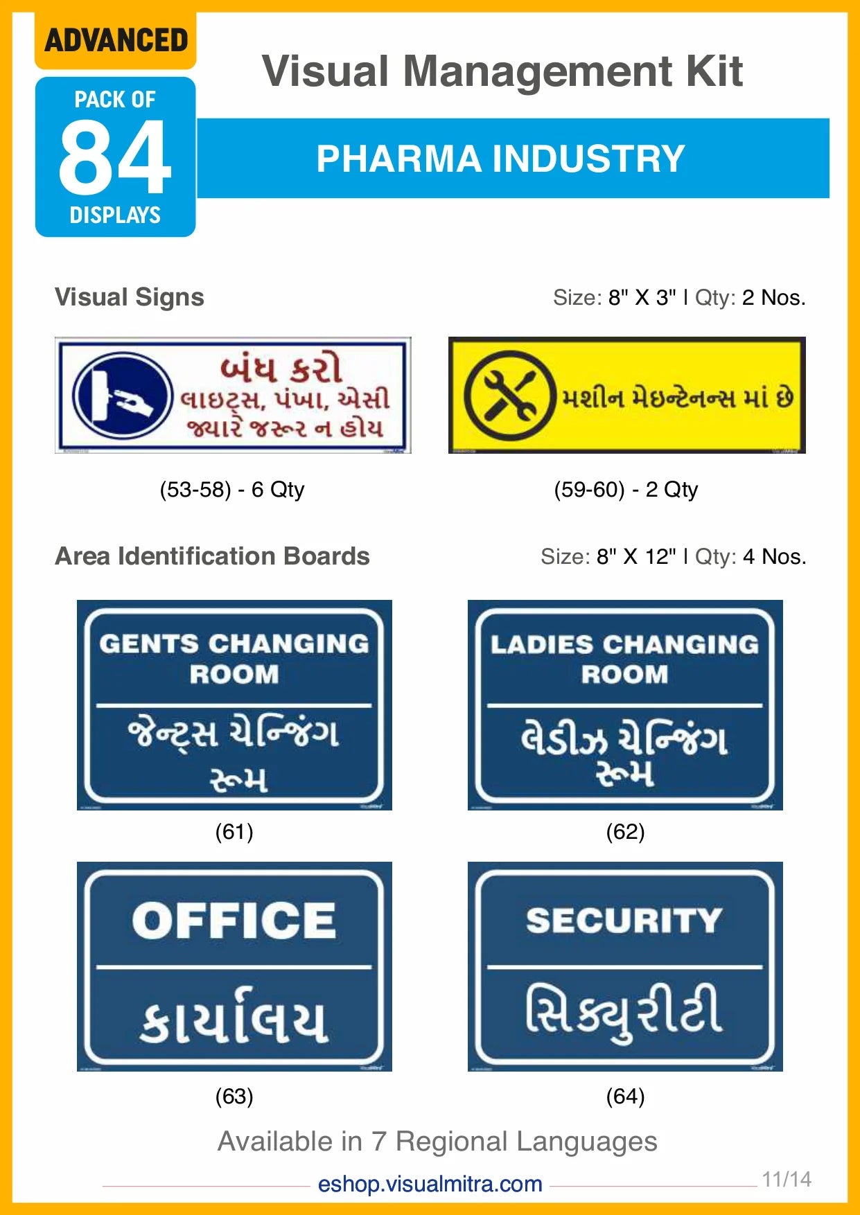 The Advanced Kit includes a total of 84 visual management solutions, seamlessly integrating visual displays, signs, auto glow signs, and area identification boards. Each element is crafted to deliver essential information effectively, promoting a well-organized, safe, and productive work environment.