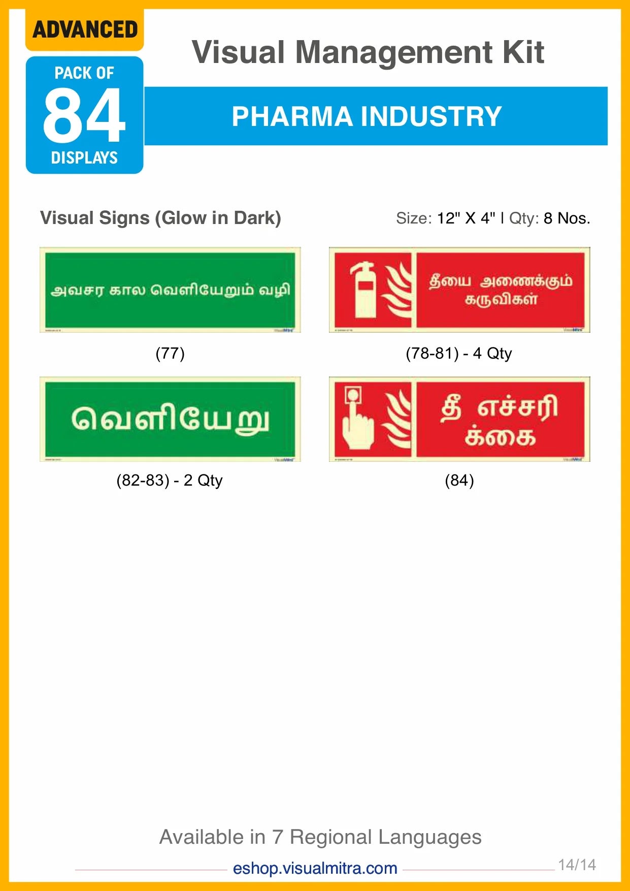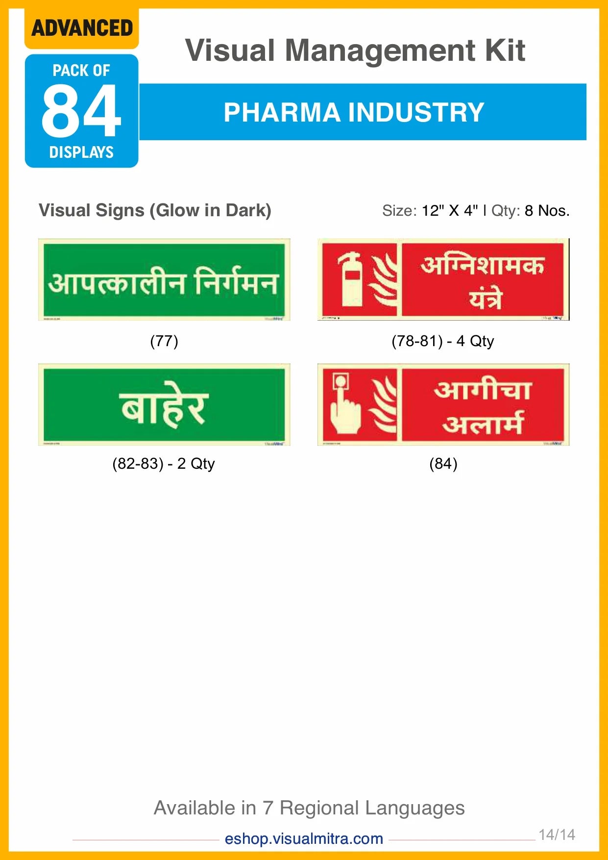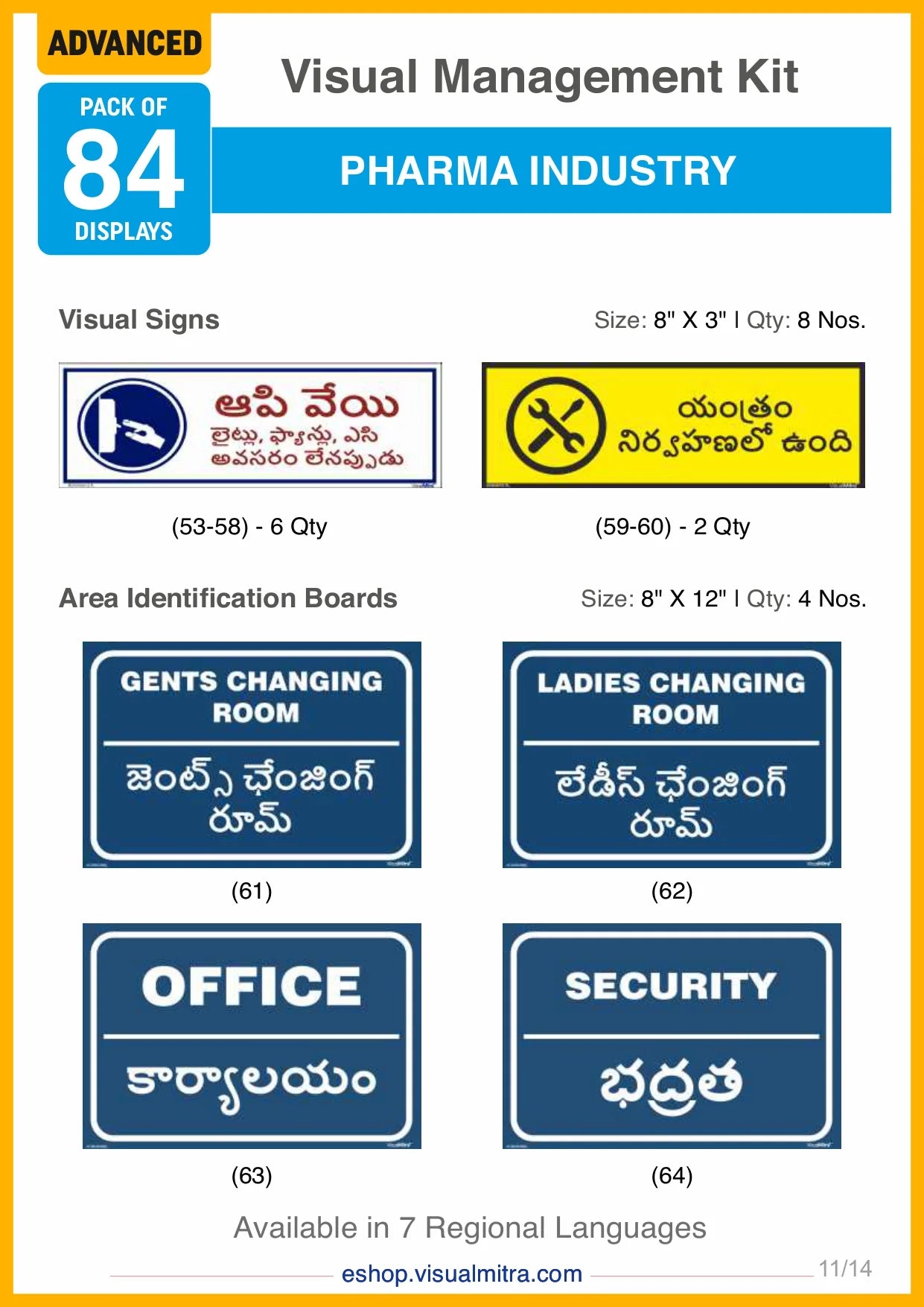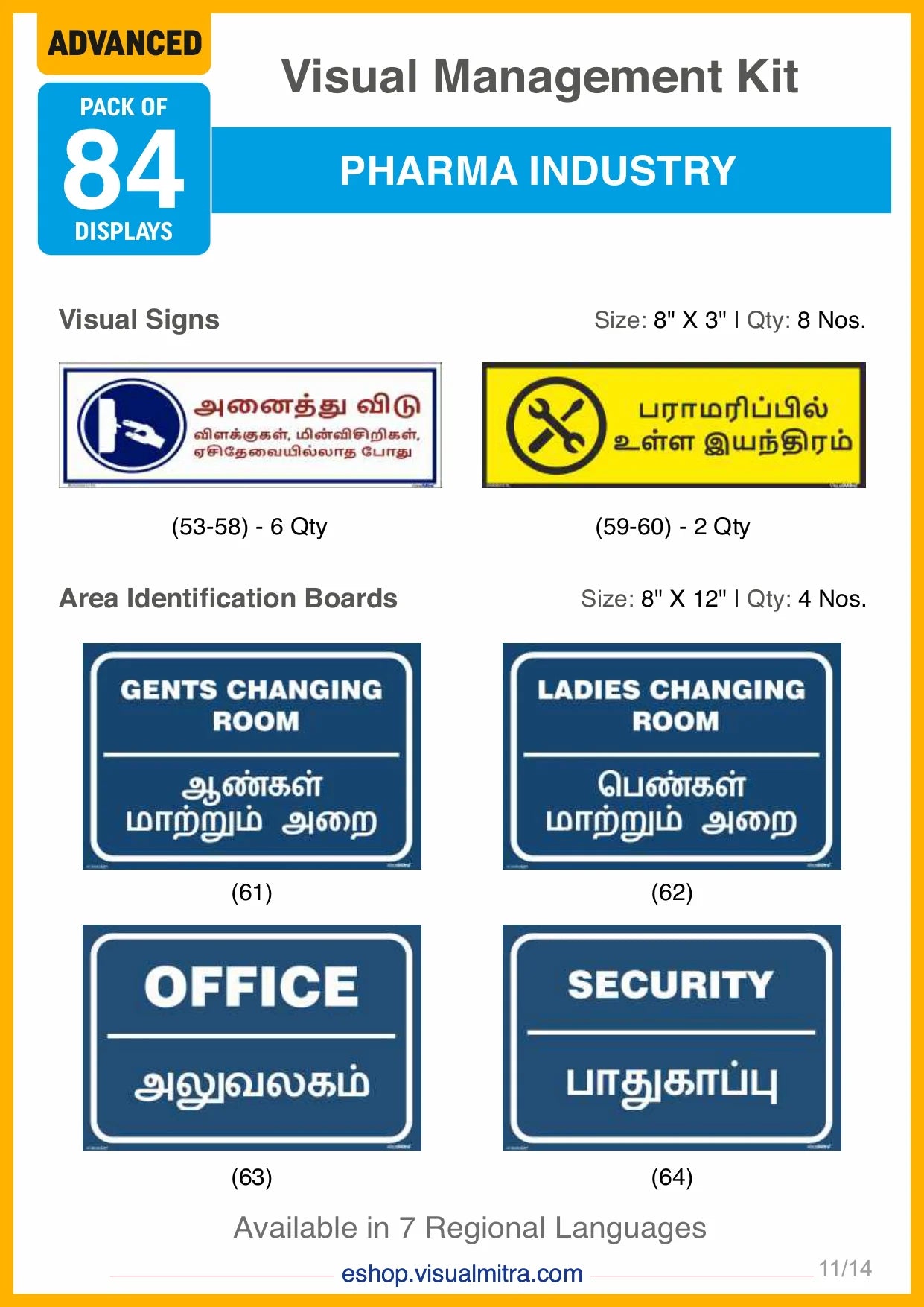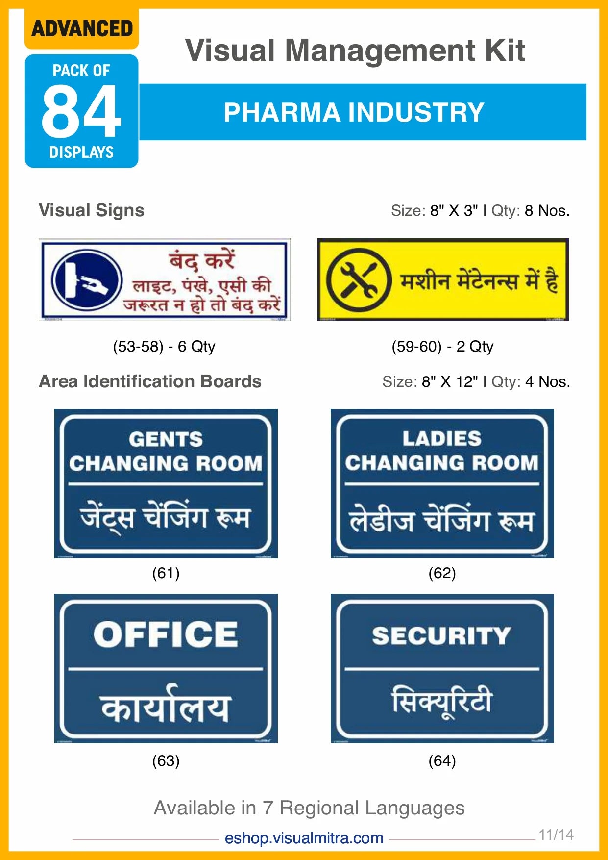 The Advanced Kit includes a total of 84 visual management solutions, seamlessly integrating visual displays, signs, auto glow signs, and area identification boards. Each element is crafted to deliver essential information effectively, promoting a well-organized, safe, and productive work environment.