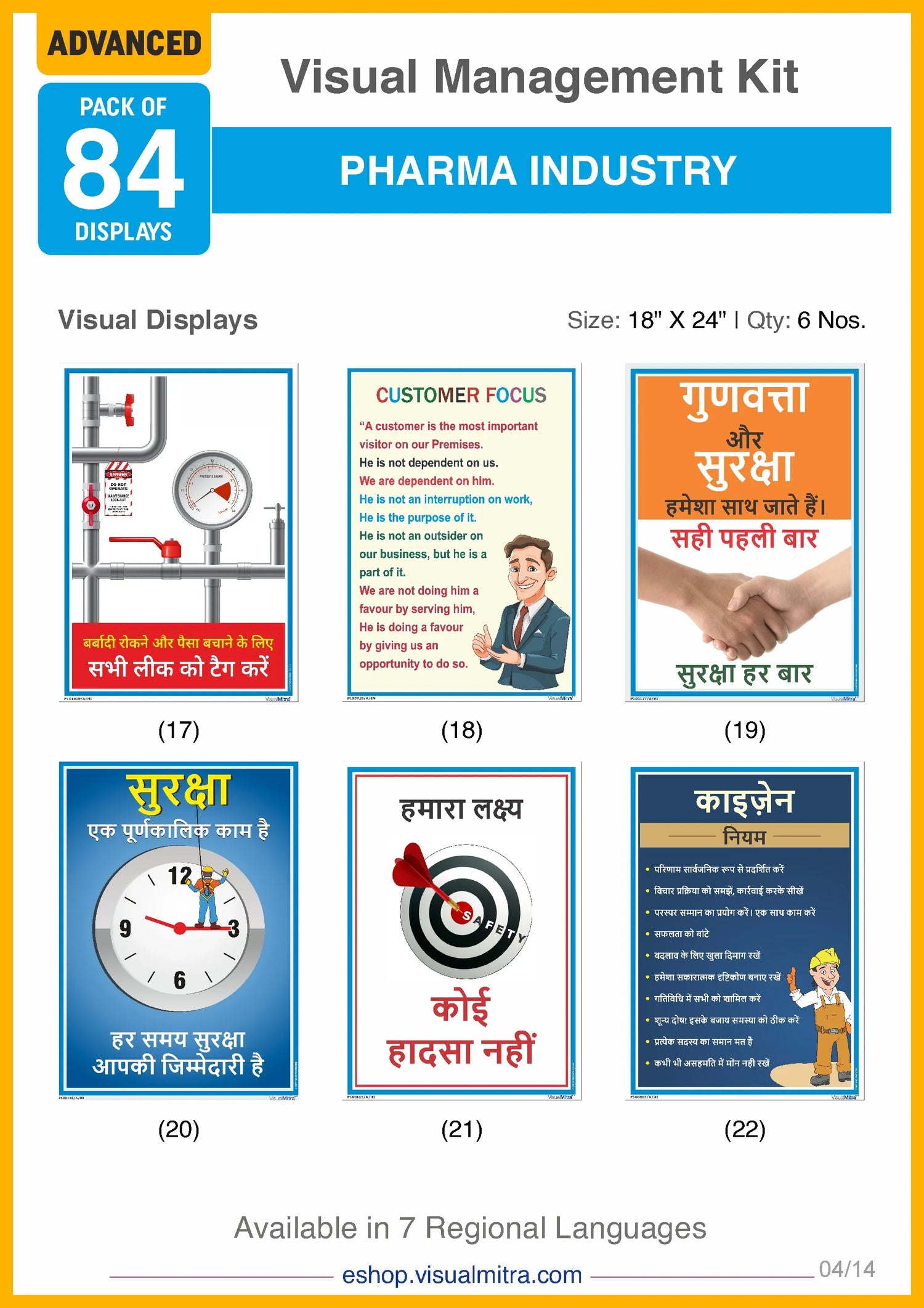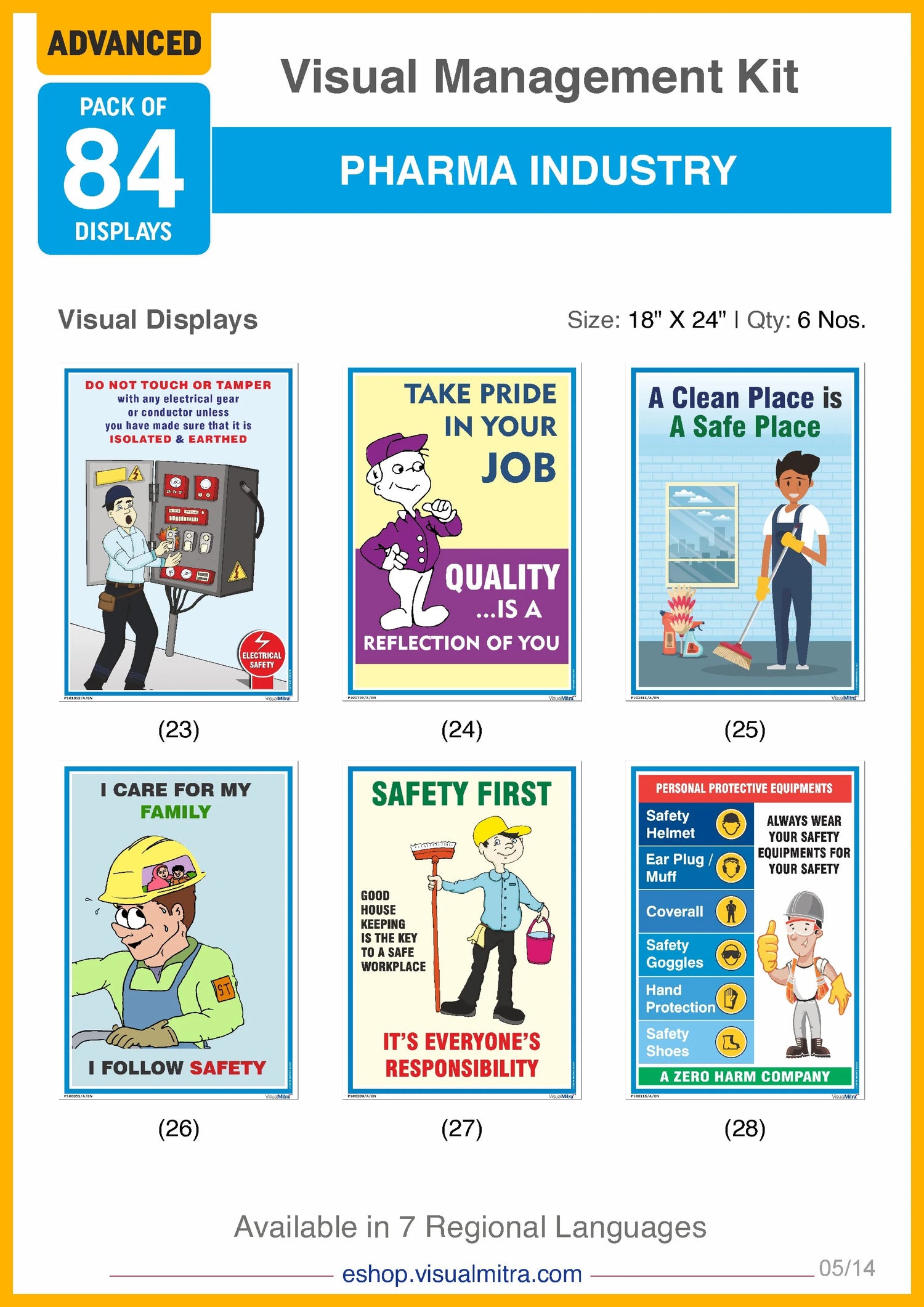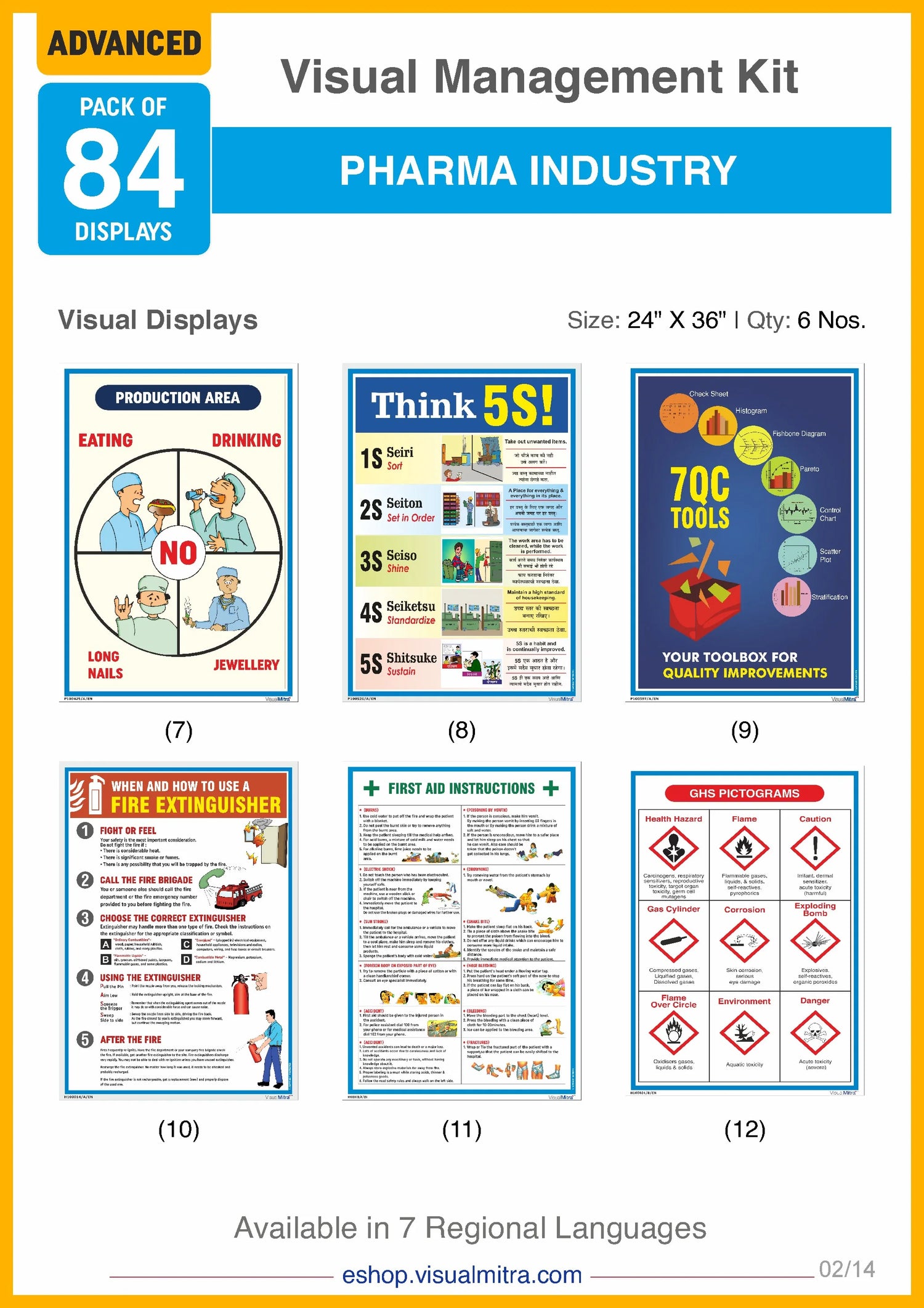 With 36 industry specific posters, the Advanced Kit covers an extensive range of topics, including quality assurance, 5S principles, environmental protection, motivational themes, electrical and fire safety, Good Manufacturing Practices, material handling, impeccable housekeeping, and much more. These displays are designed to be highly visible and easily comprehensible, ensuring that critical information is always accessible to your employees. By consistently reinforcing best practices and guidelines, these visual displays help foster a culture of continuous improvement and adherence to industry standards.