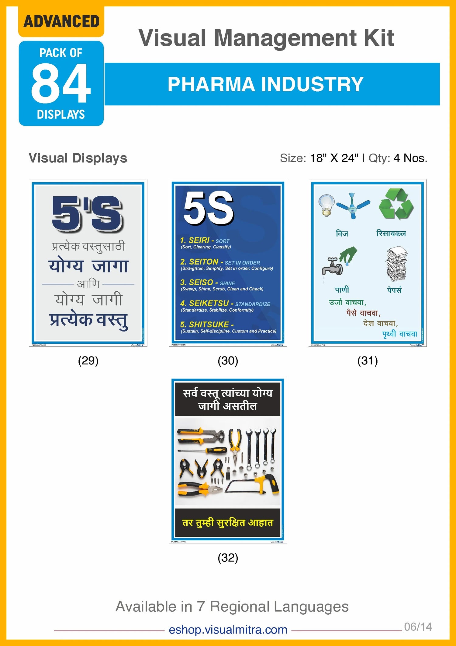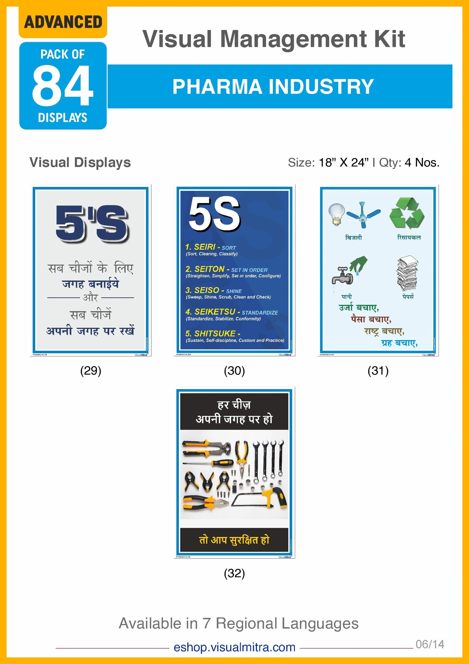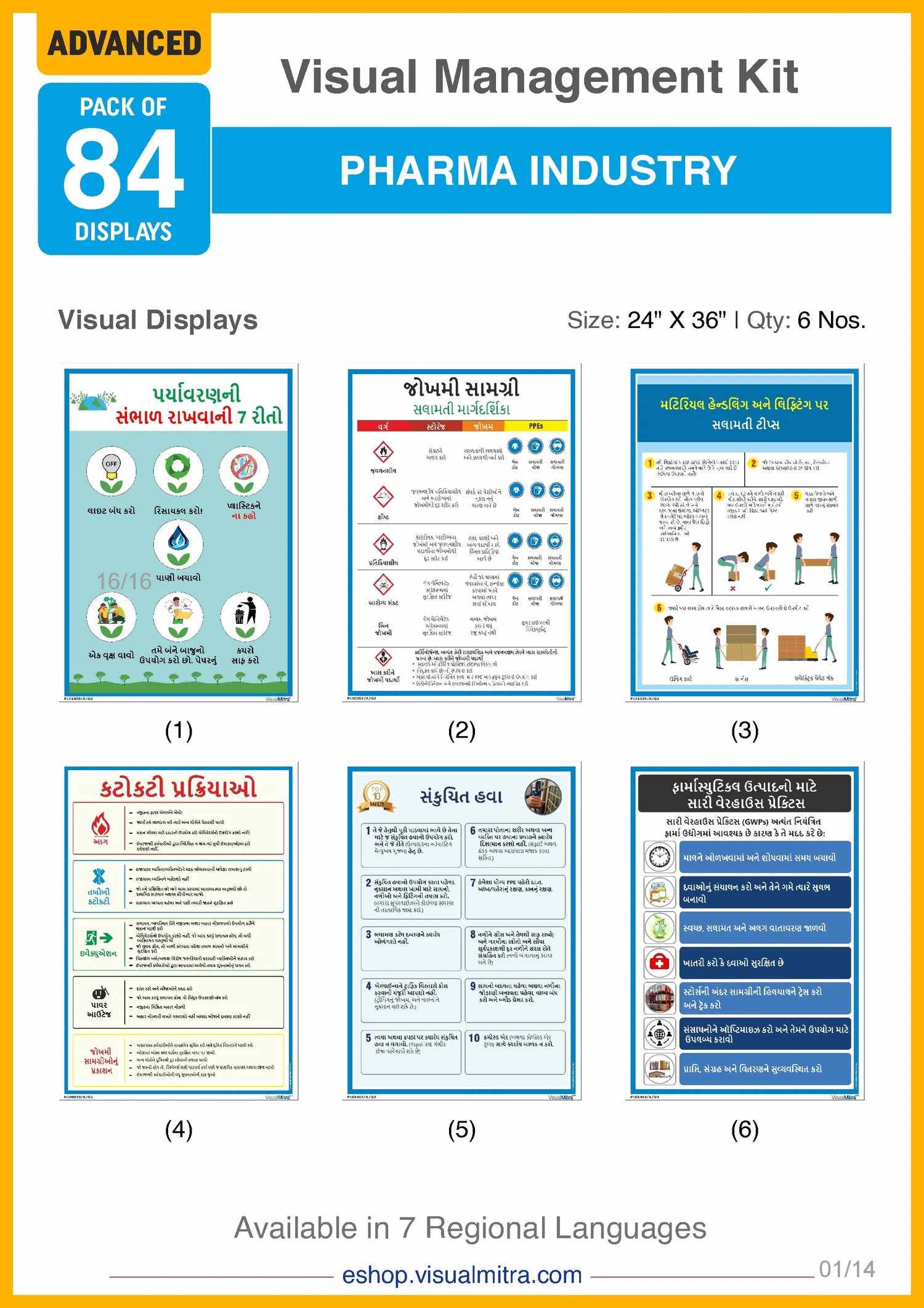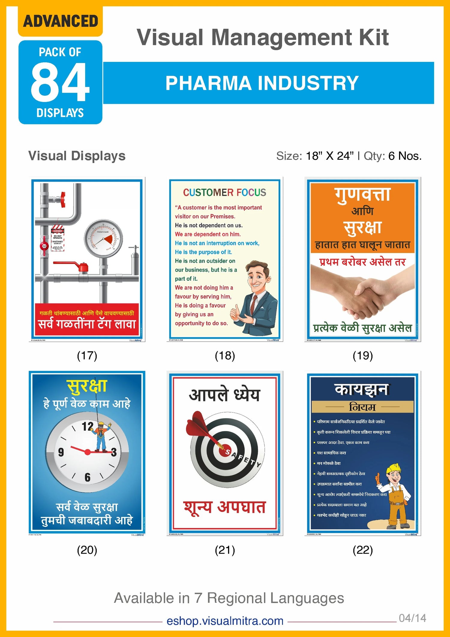 With 36 industry specific posters, the Advanced Kit covers an extensive range of topics, including quality assurance, 5S principles, environmental protection, motivational themes, electrical and fire safety, Good Manufacturing Practices, material handling, impeccable housekeeping, and much more. These displays are designed to be highly visible and easily comprehensible, ensuring that critical information is always accessible to your employees. By consistently reinforcing best practices and guidelines, these visual displays help foster a culture of continuous improvement and adherence to industry standards.