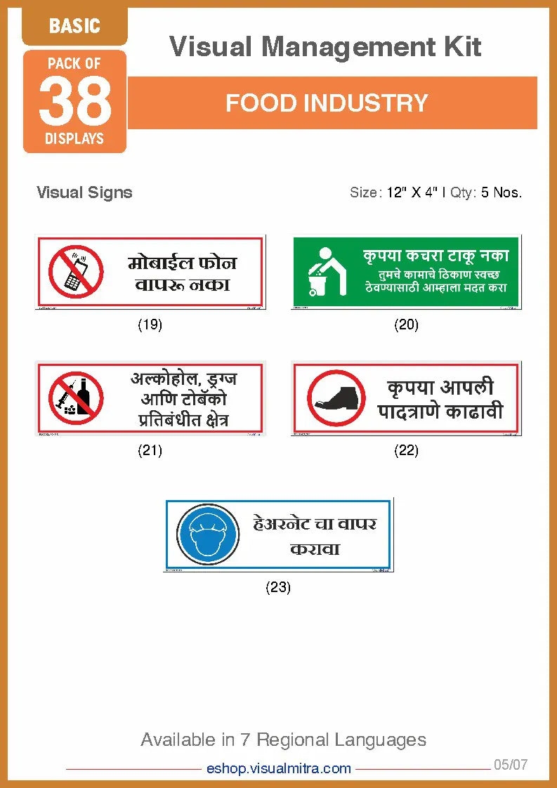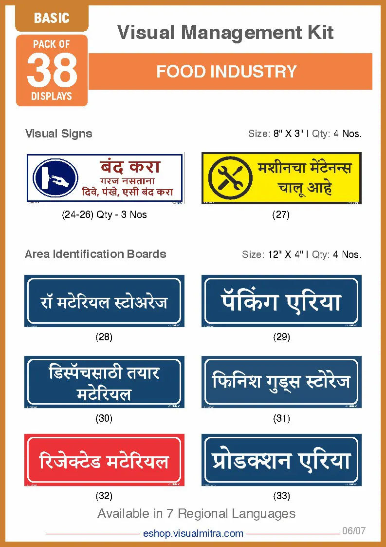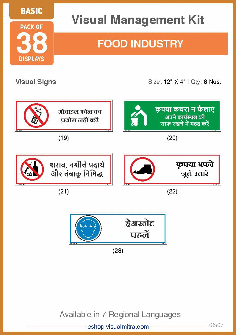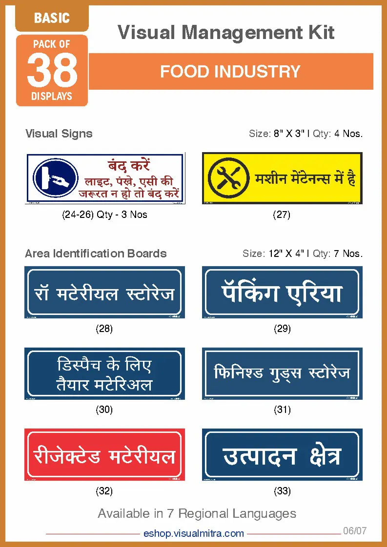Basic Kit- Food Industry Visual Management Kit - Hindi / Sunboard - 3 mm is backordered and will ship as soon as it is back in stock.