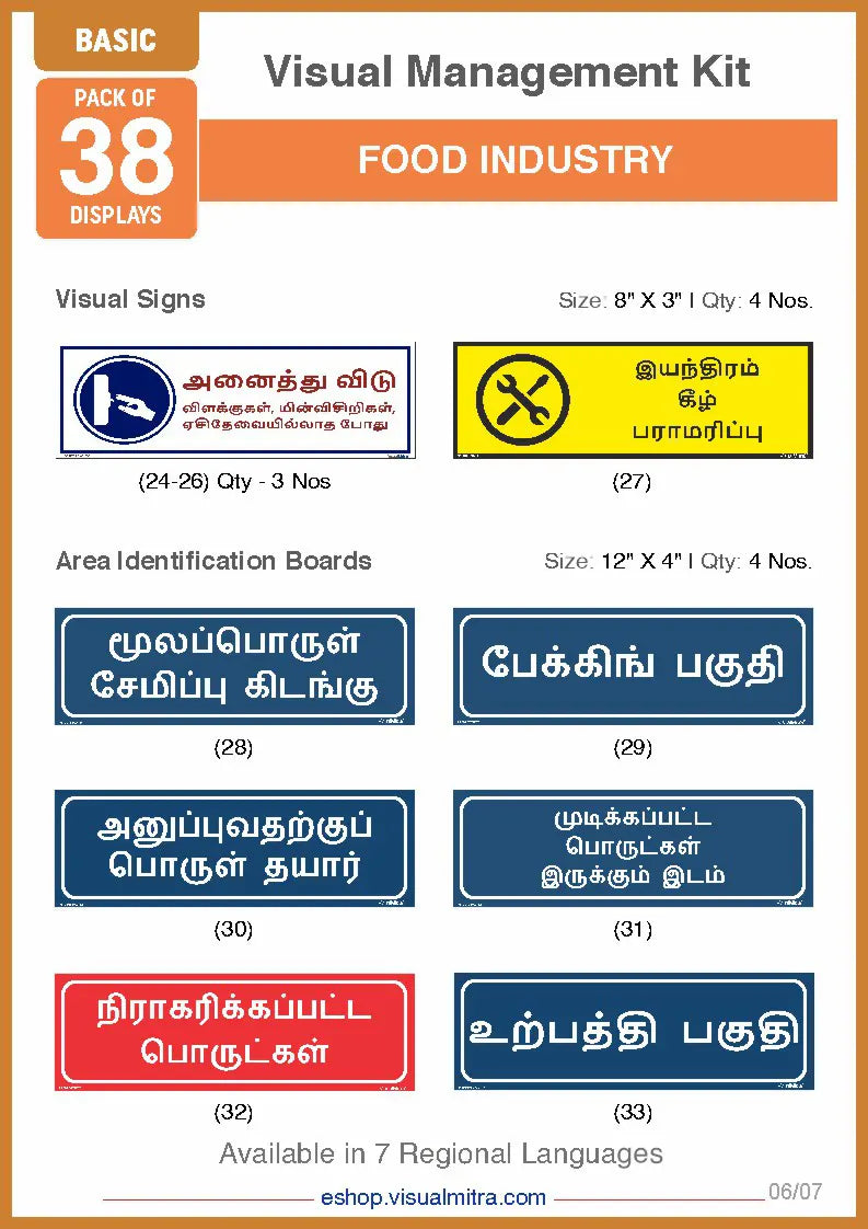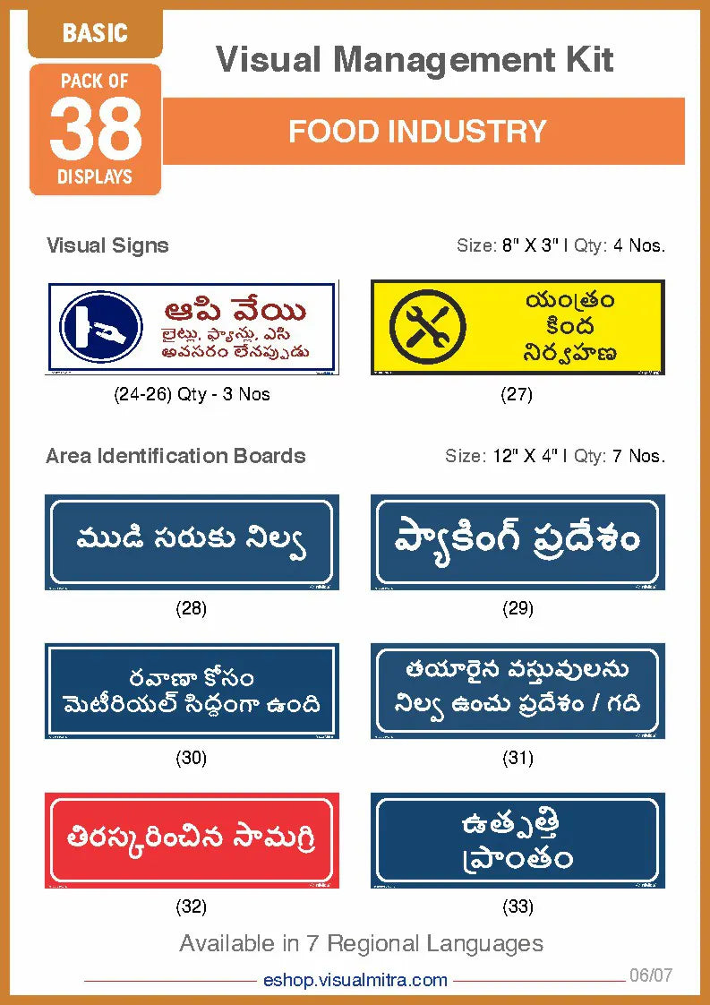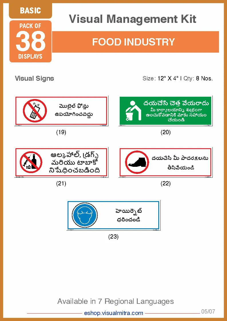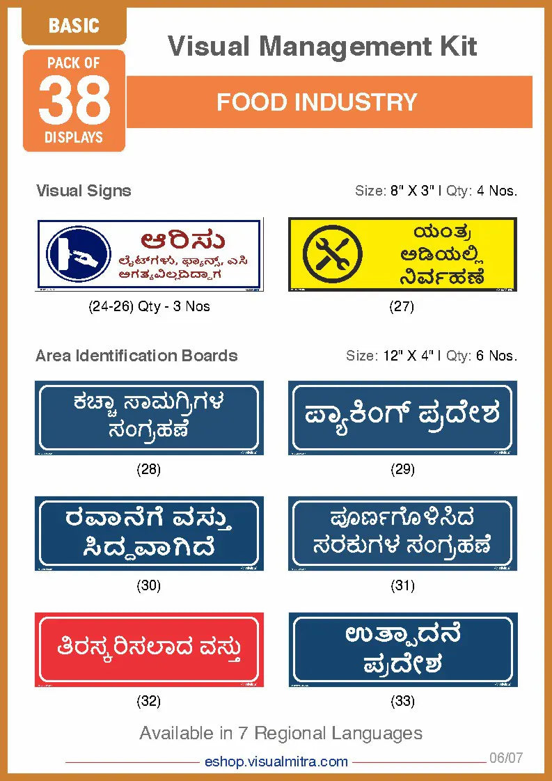 Basic Kit- Food Industry Visual Management Kit - Hindi / Sunboard - 3 mm is backordered and will ship as soon as it is back in stock.
