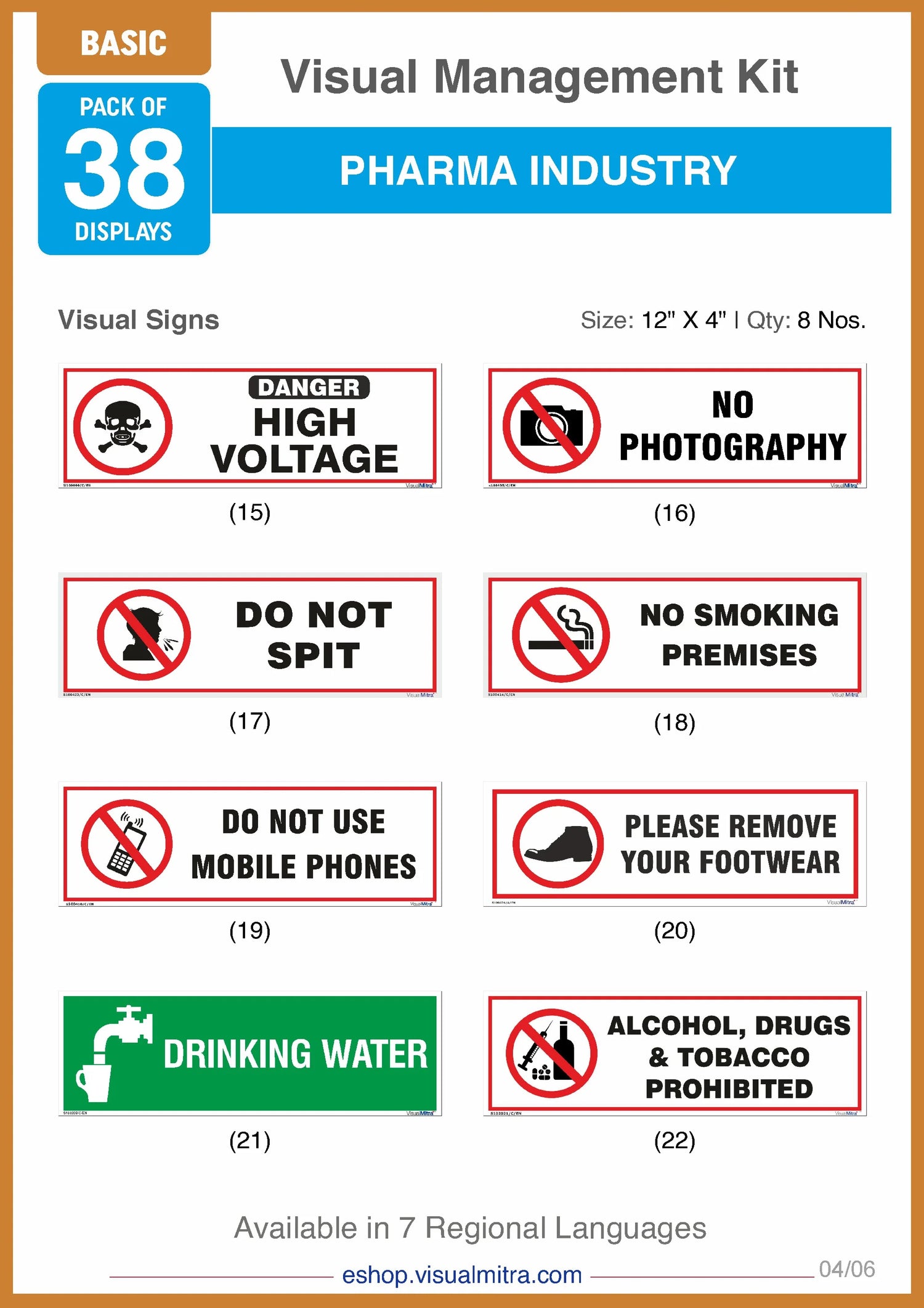 Your Foundation for Safety Success. Build a solid foundation for safety in your small pharmaceutical facility or for some recognized areas in the large pharmaceutical industry with the Basic Kit - Pharma Industry Visual Management Kit. This targeted package provides the essentials for creating a vigilant and informed environment, keeping your employees safe and your operations running smoothly.