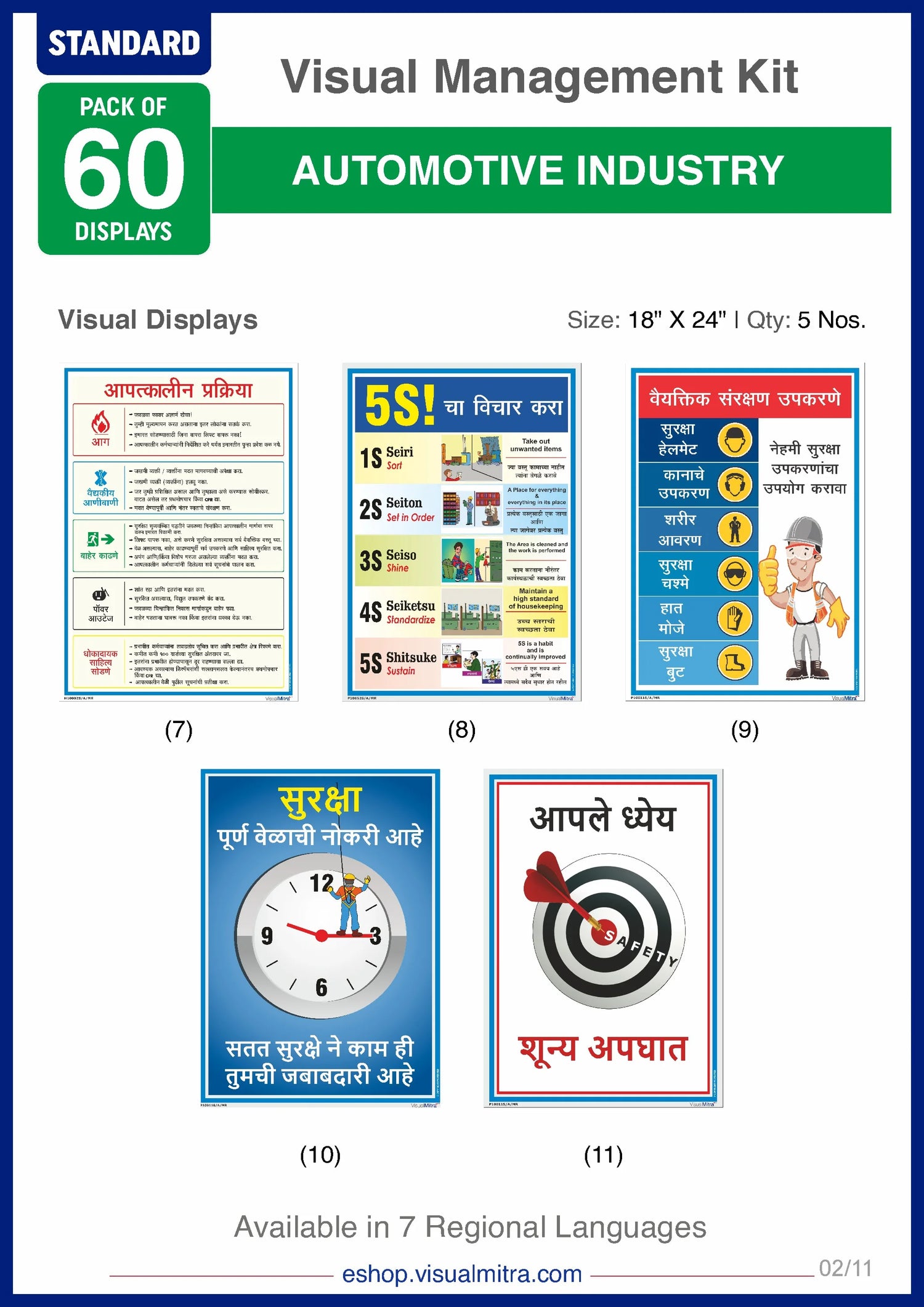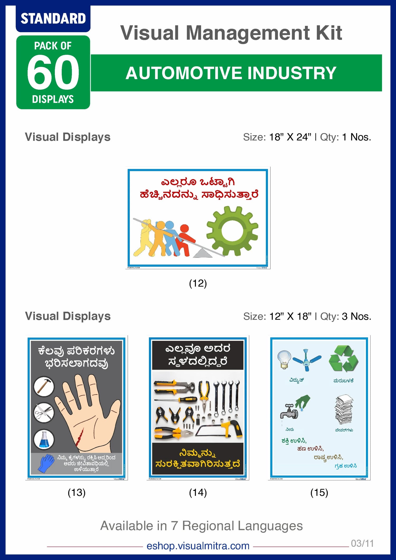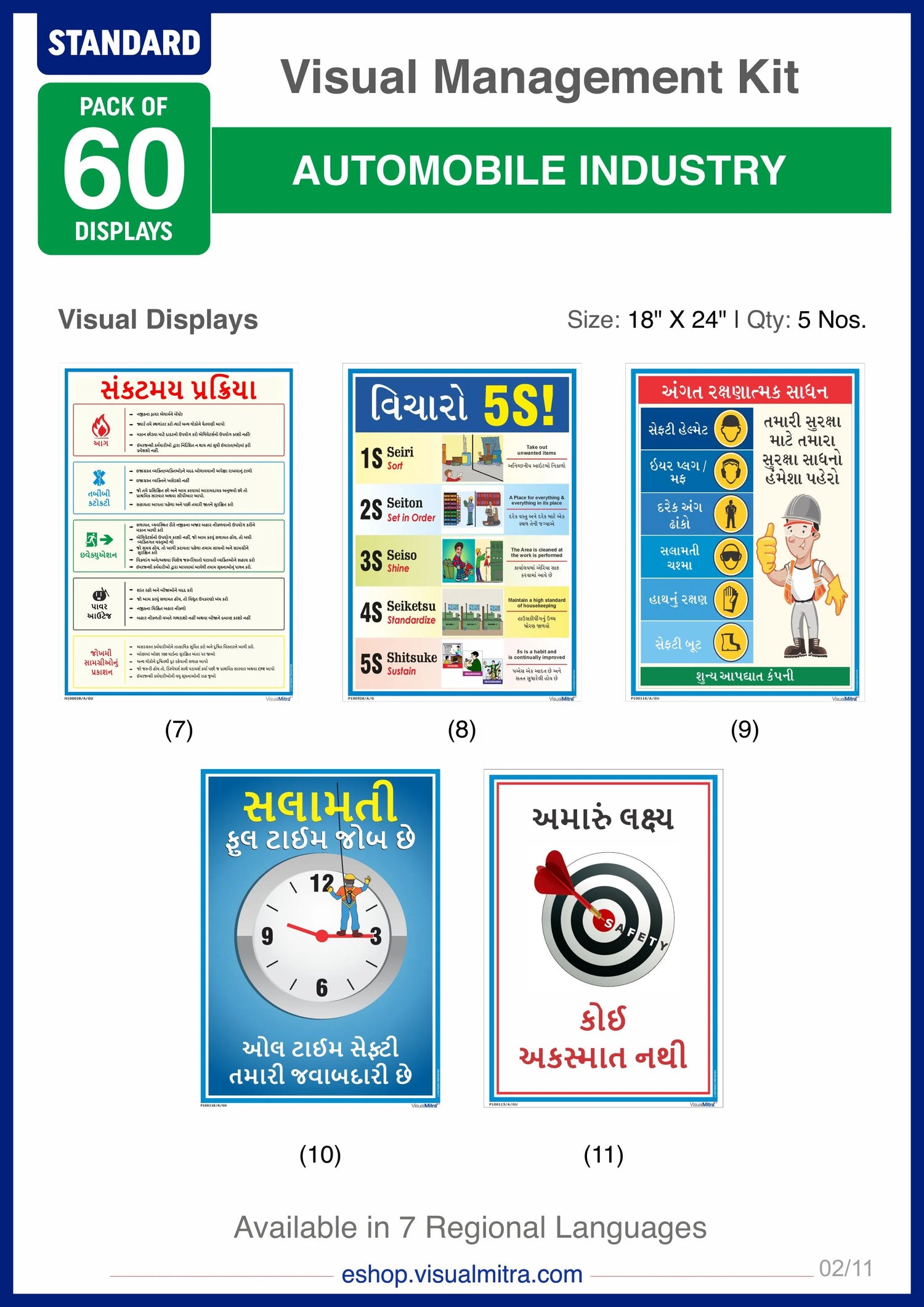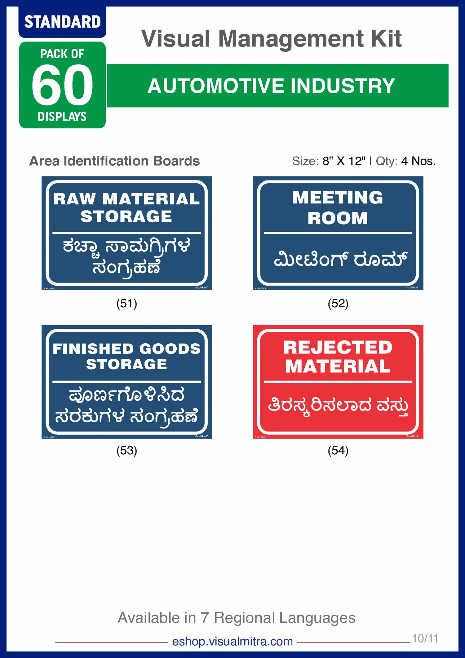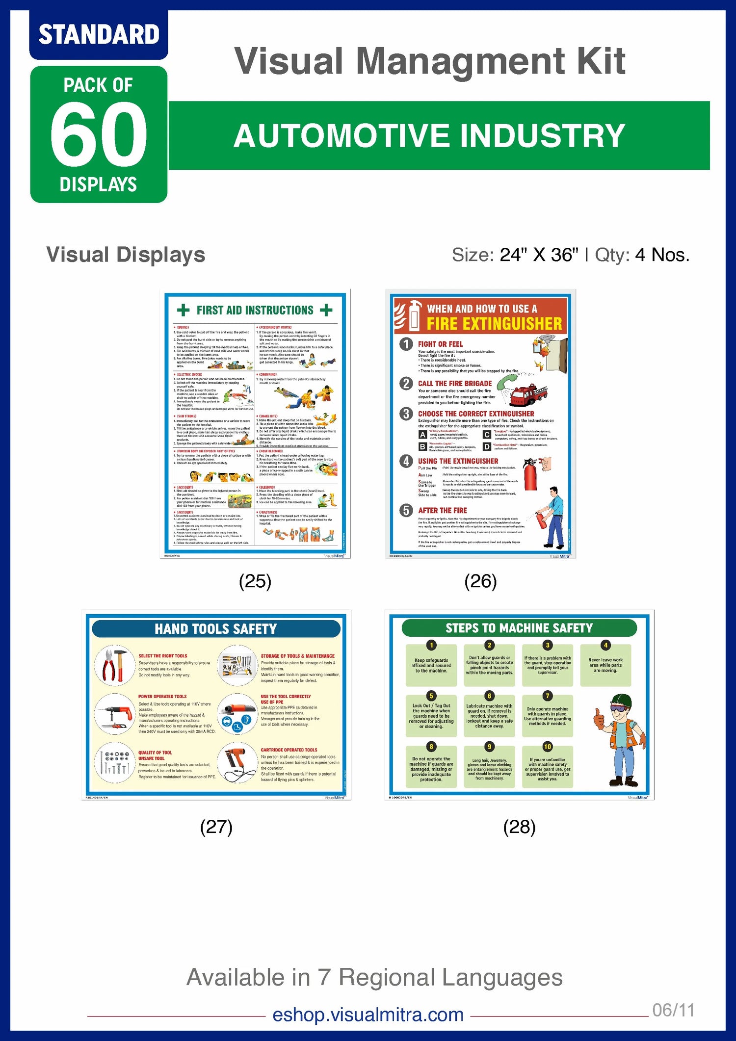 - Standard Coverage: With 60 Visual Displays covering a broad range of visual management needs, the Standard Kit provides a complete solution for any Automotive facility.