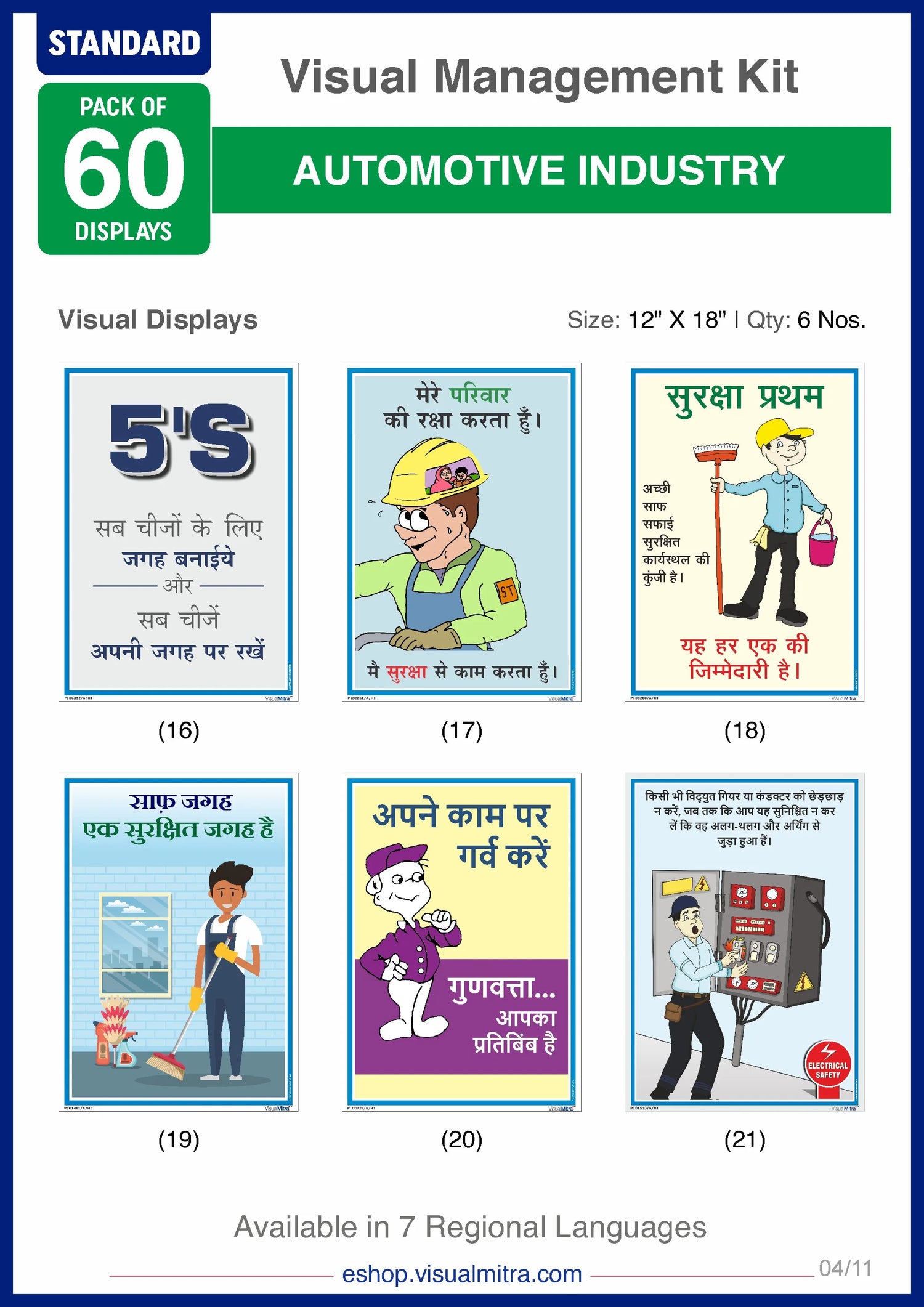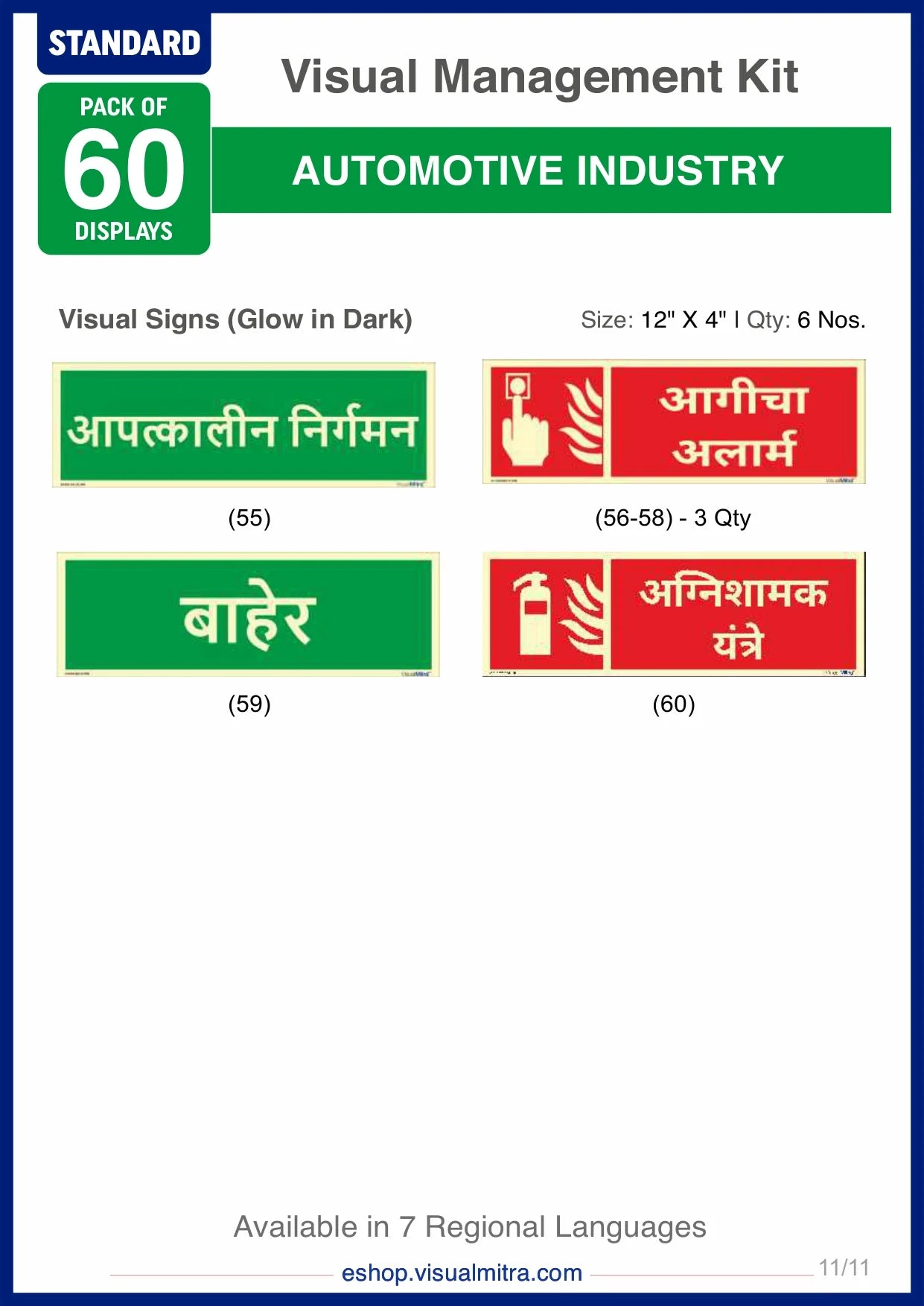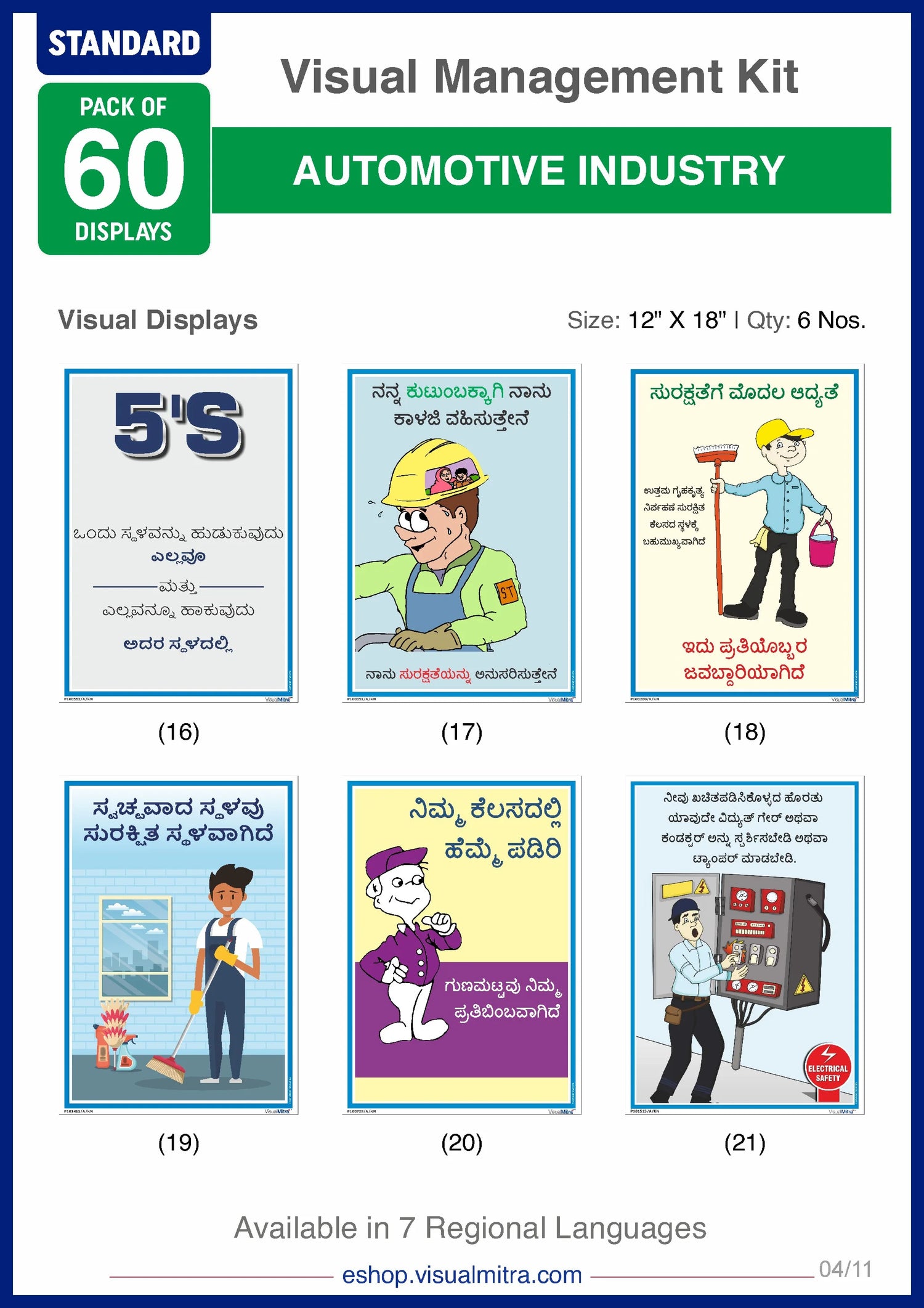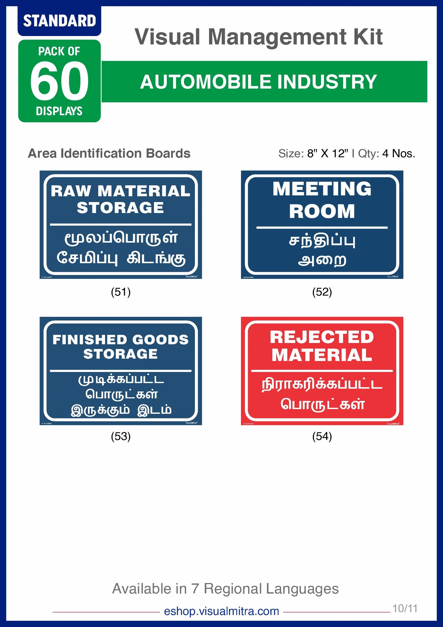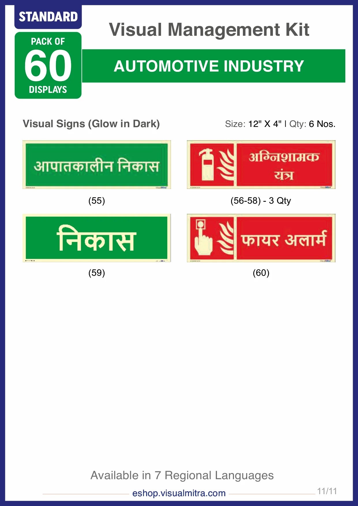 - Standard Coverage: With 60 Visual Displays covering a broad range of visual management needs, the Standard Kit provides a complete solution for any Automotive facility.