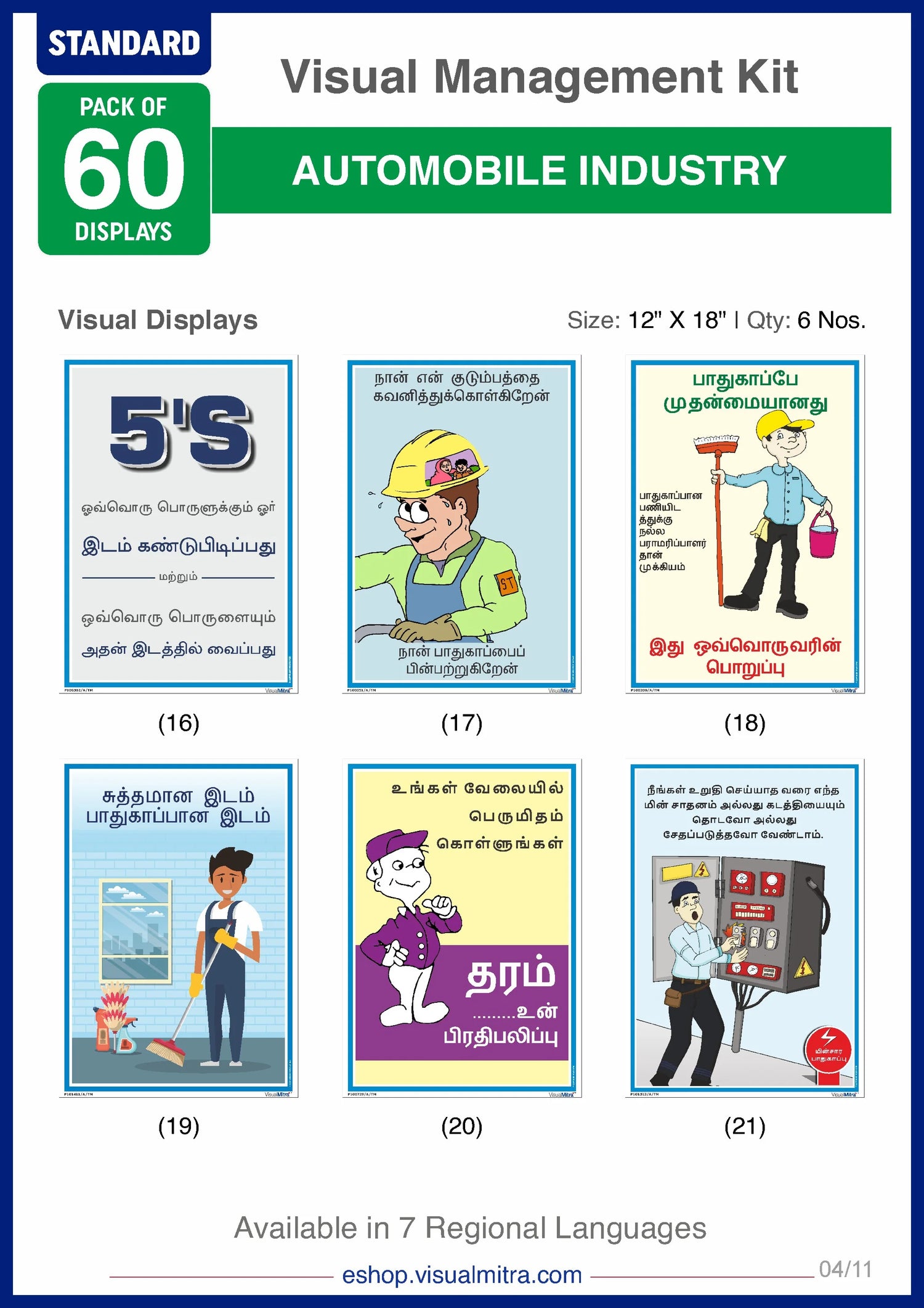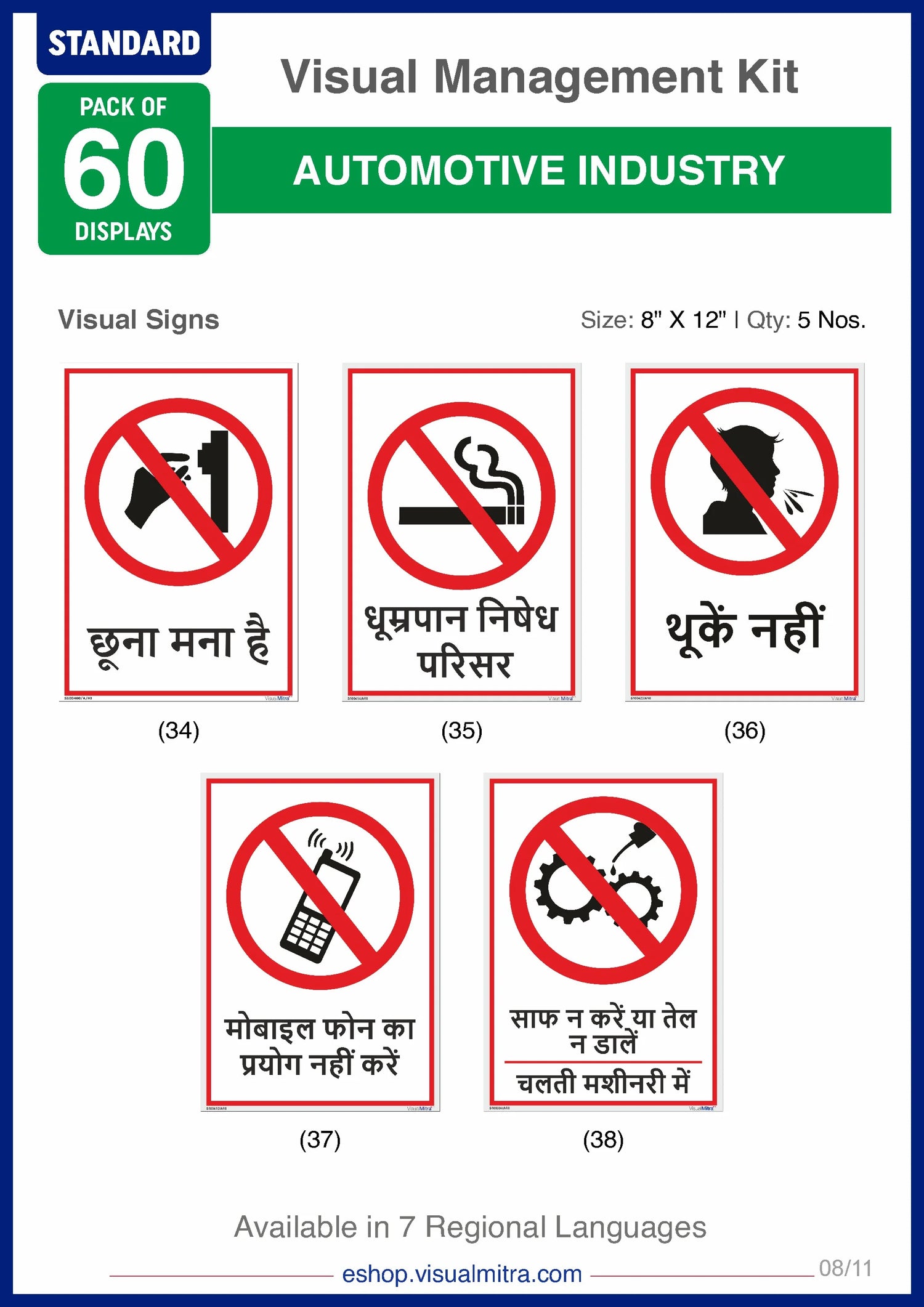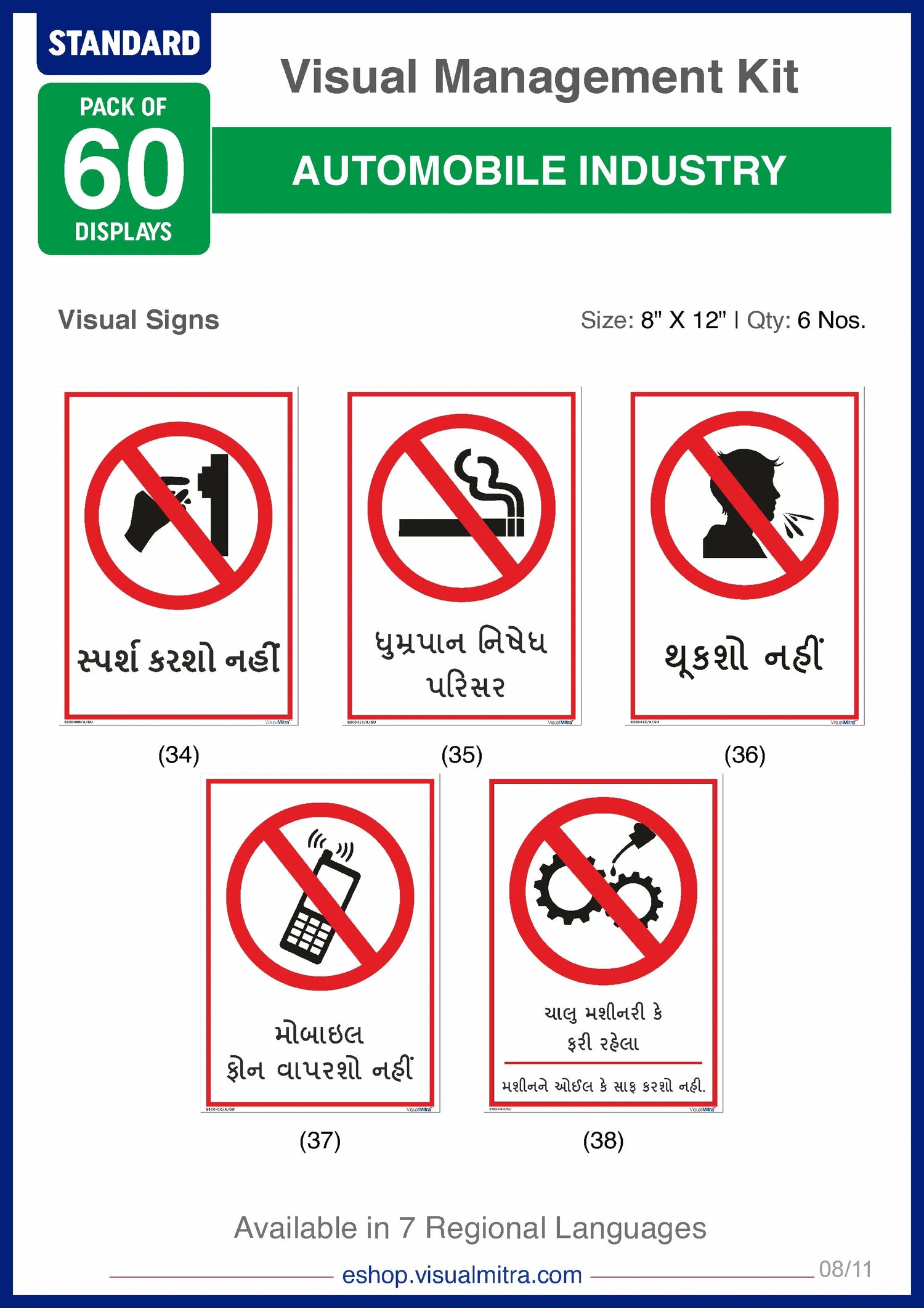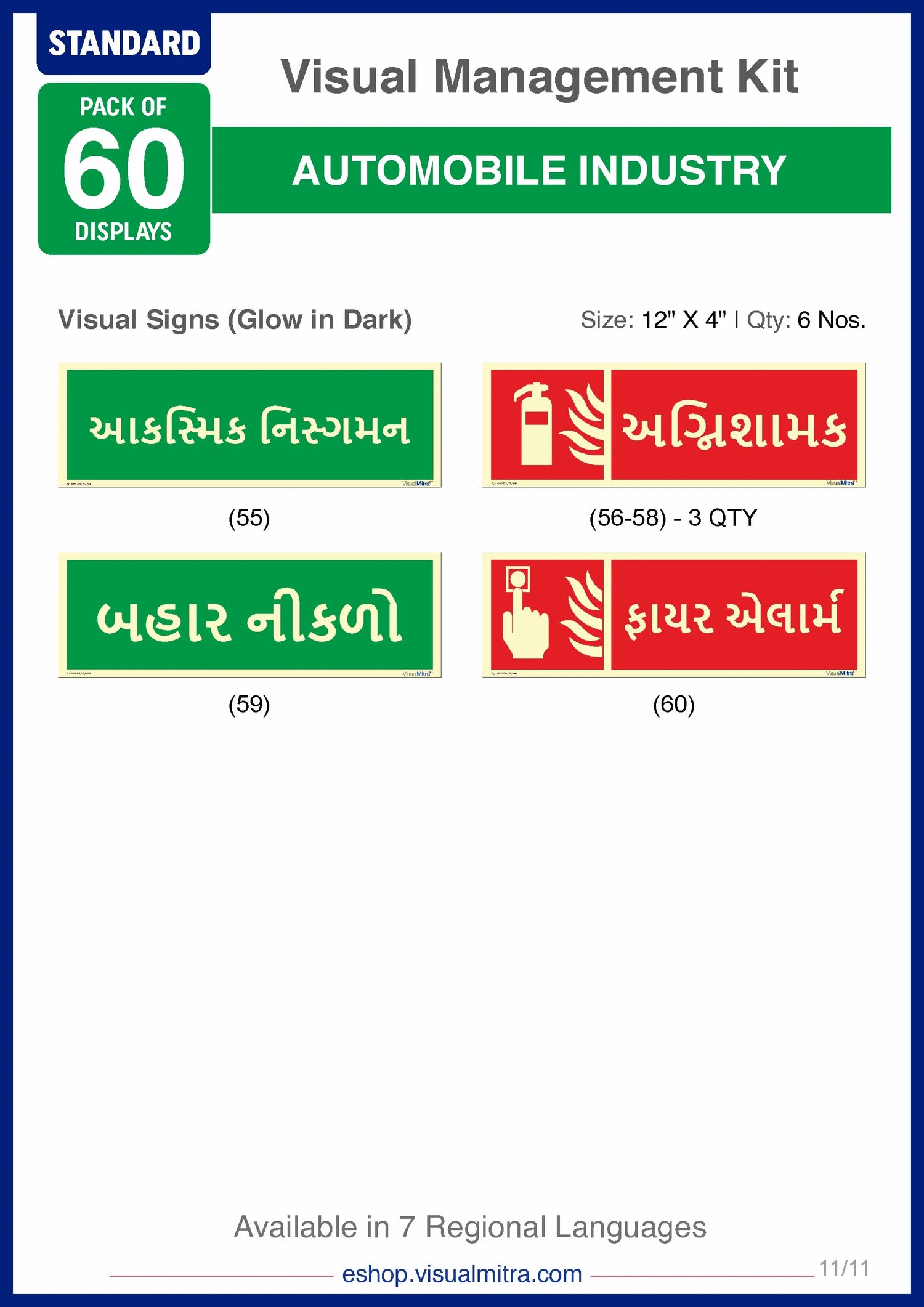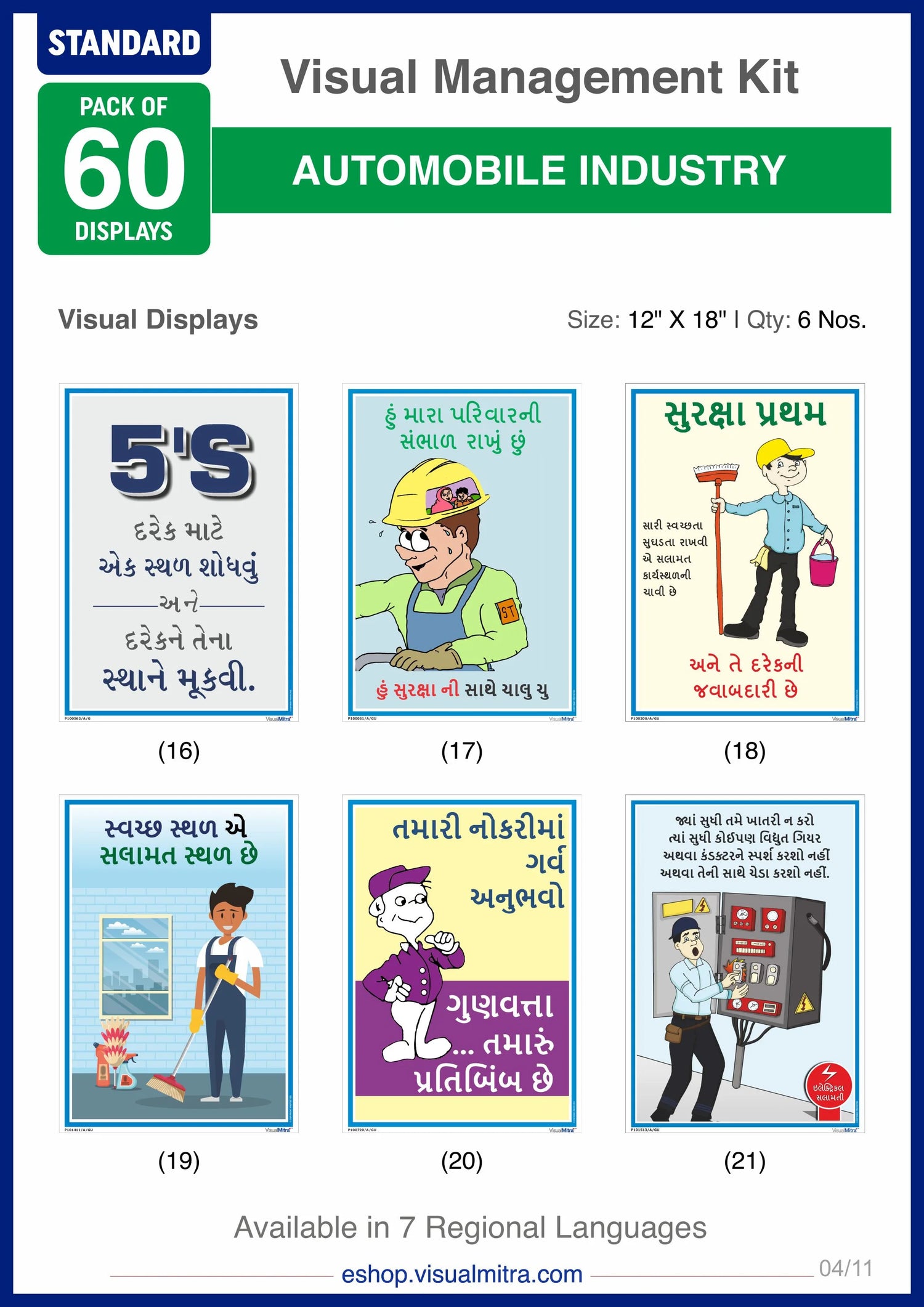 - Standard Coverage: With 60 Visual Displays covering a broad range of visual management needs, the Standard Kit provides a complete solution for any Automotive facility.