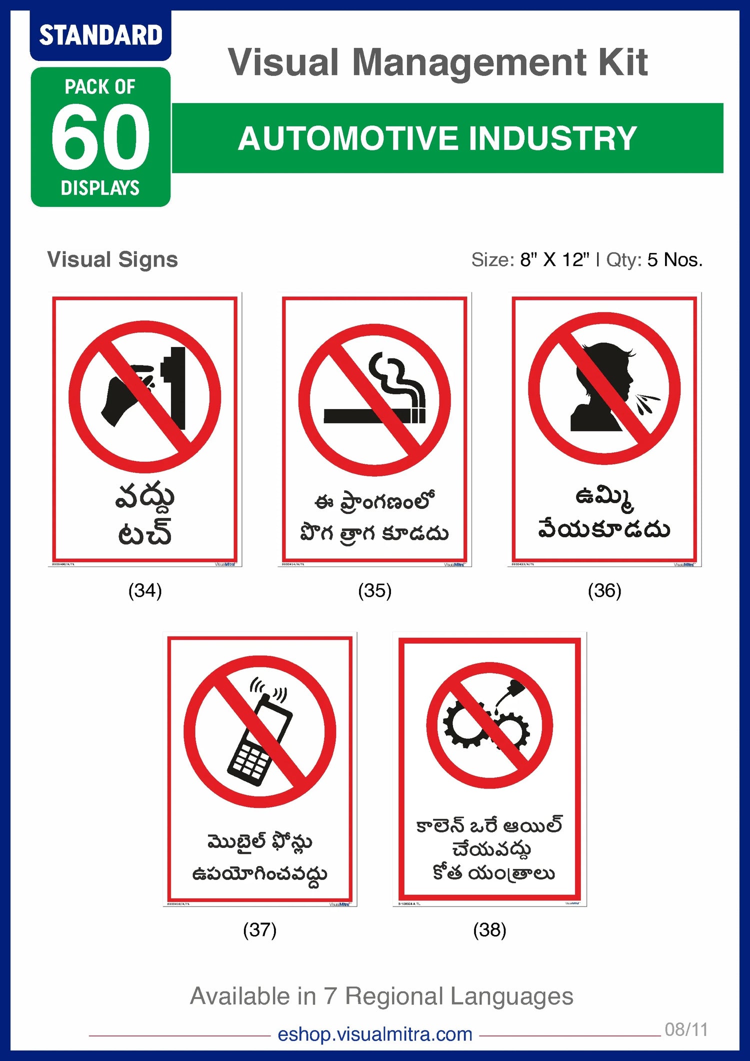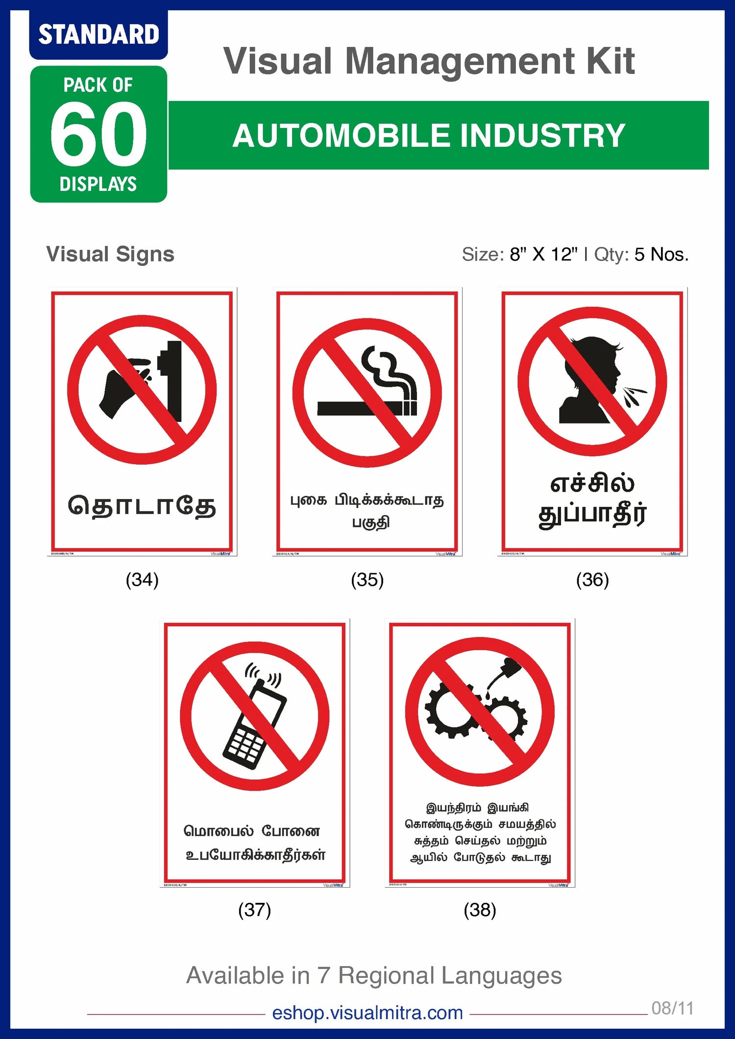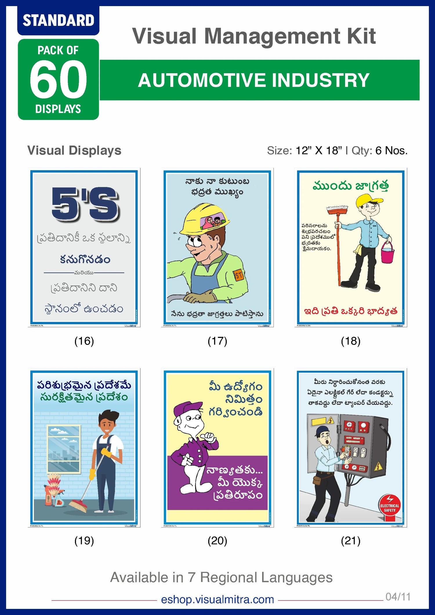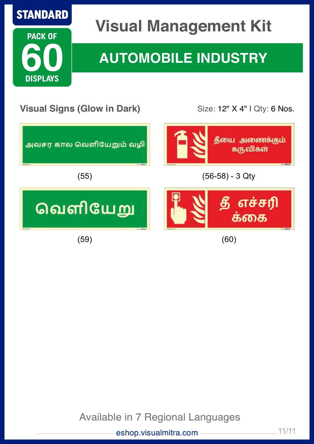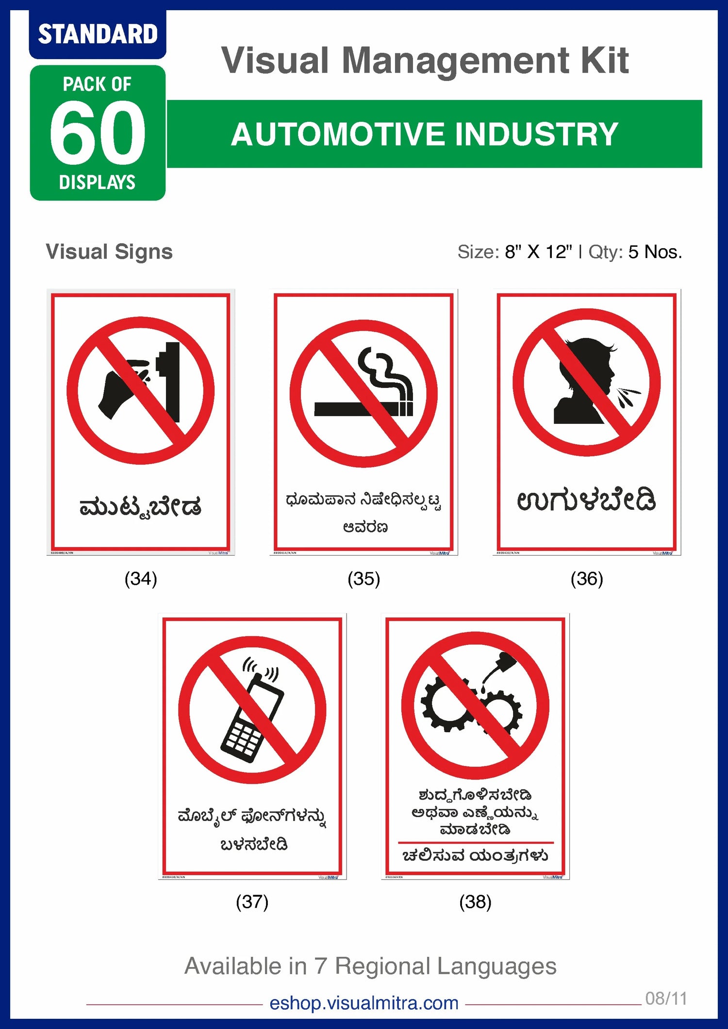 - Standard Coverage: With 60 Visual Displays covering a broad range of visual management needs, the Standard Kit provides a complete solution for any Automotive facility.