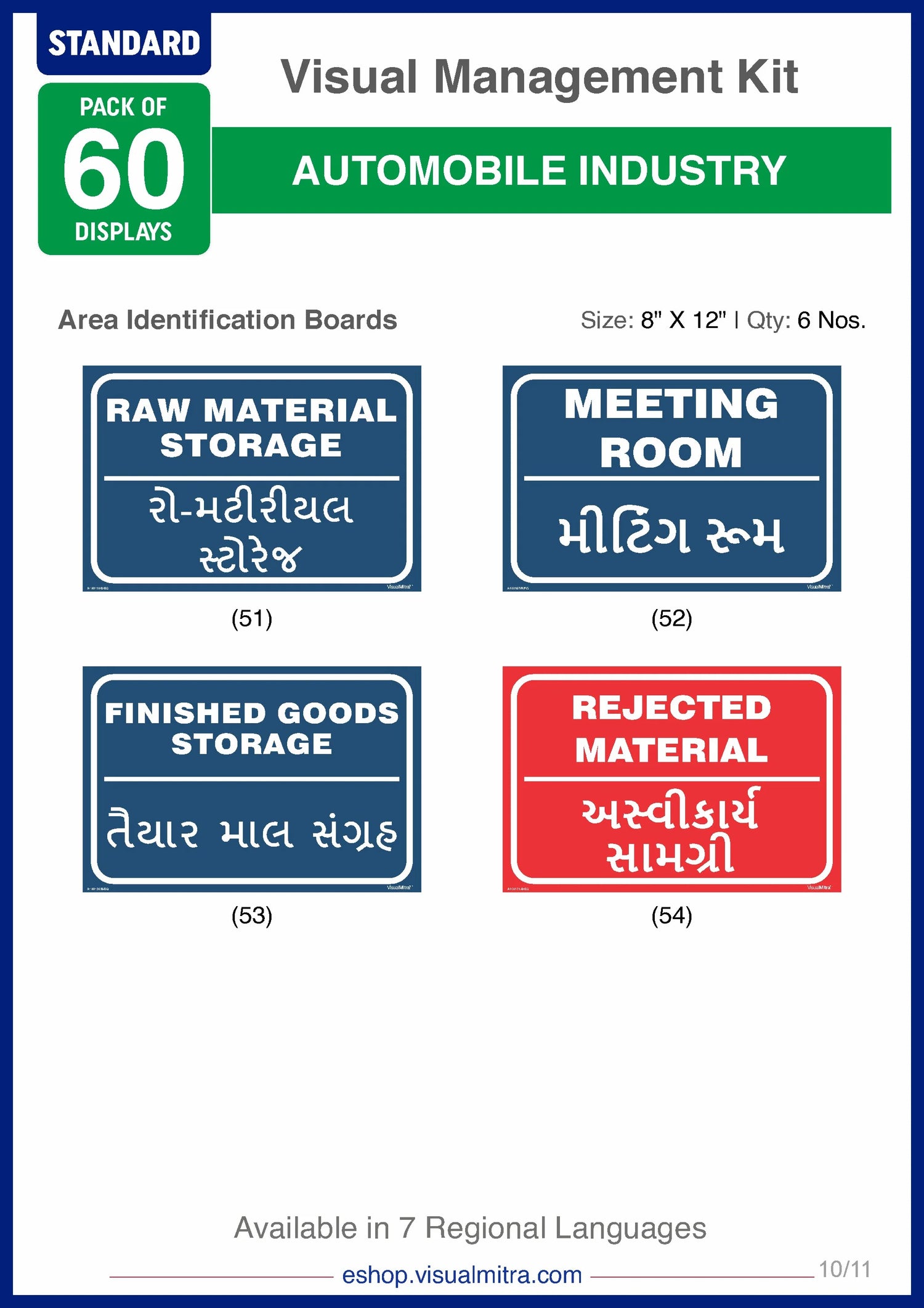 Clearly marked areas are essential for an organized and efficient workplace. Our 8 area identification boards help in the seamless identification of various zones within your facility. These boards facilitate efficient workflow management, reducing downtime and improving operational efficiency.