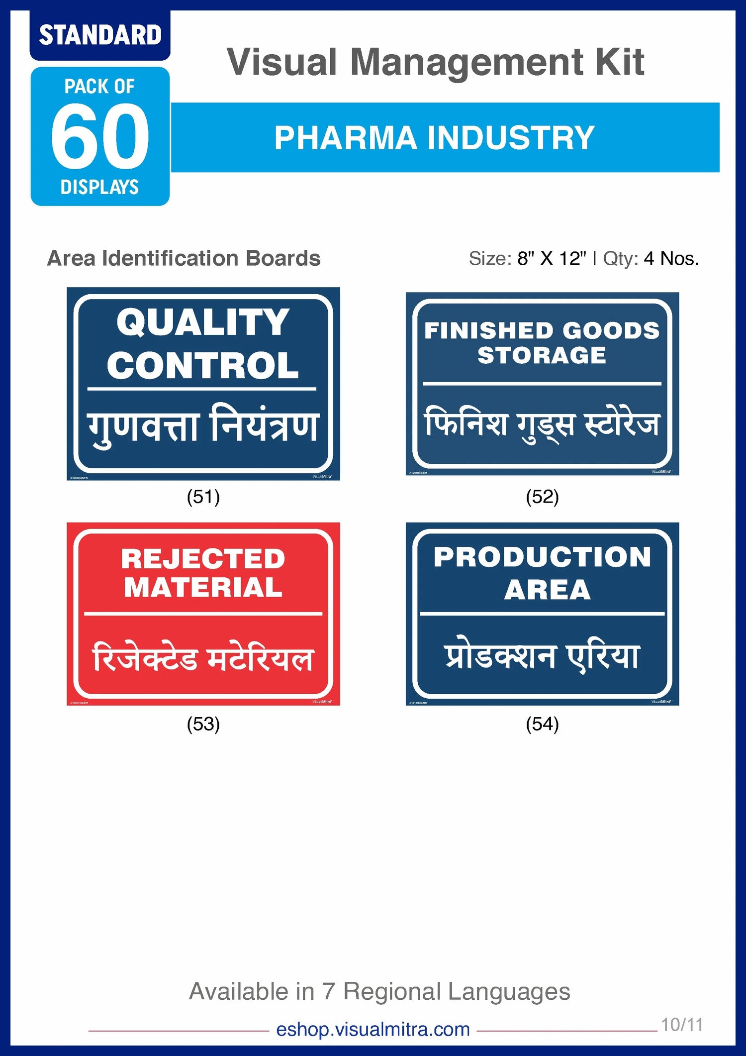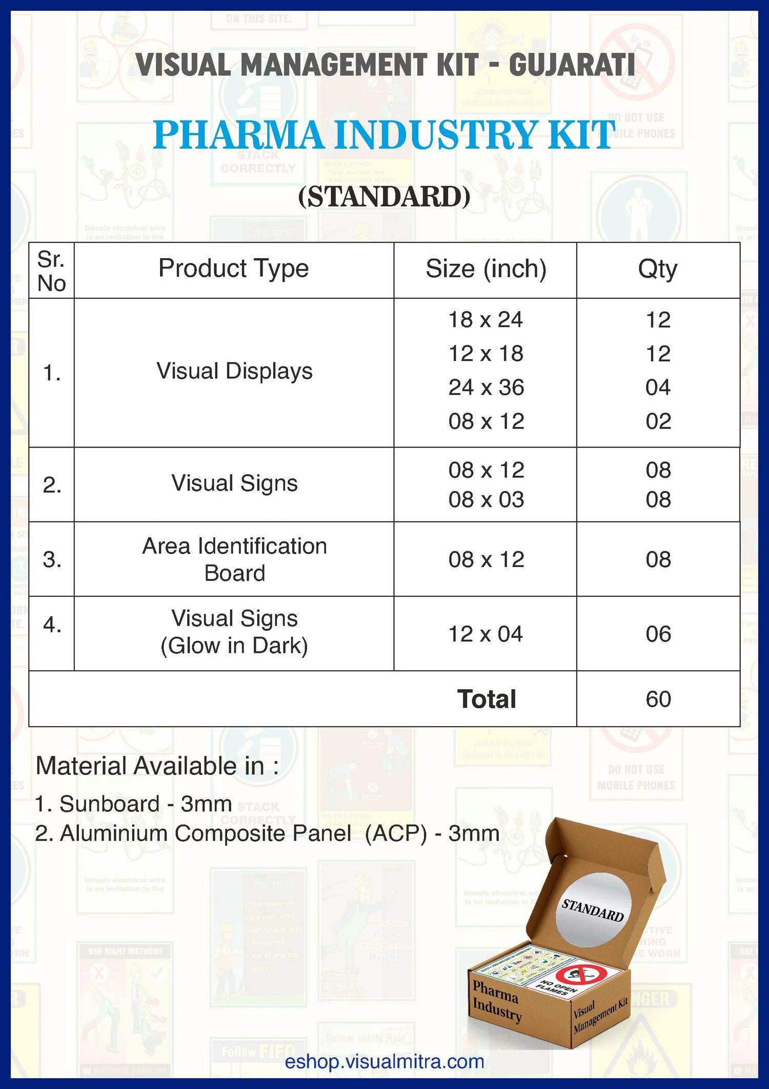 - Standard Coverage: With 60 pieces covering a broad range of visual management needs, the Standard Kit provides a complete solution for any pharmaceutical facility.