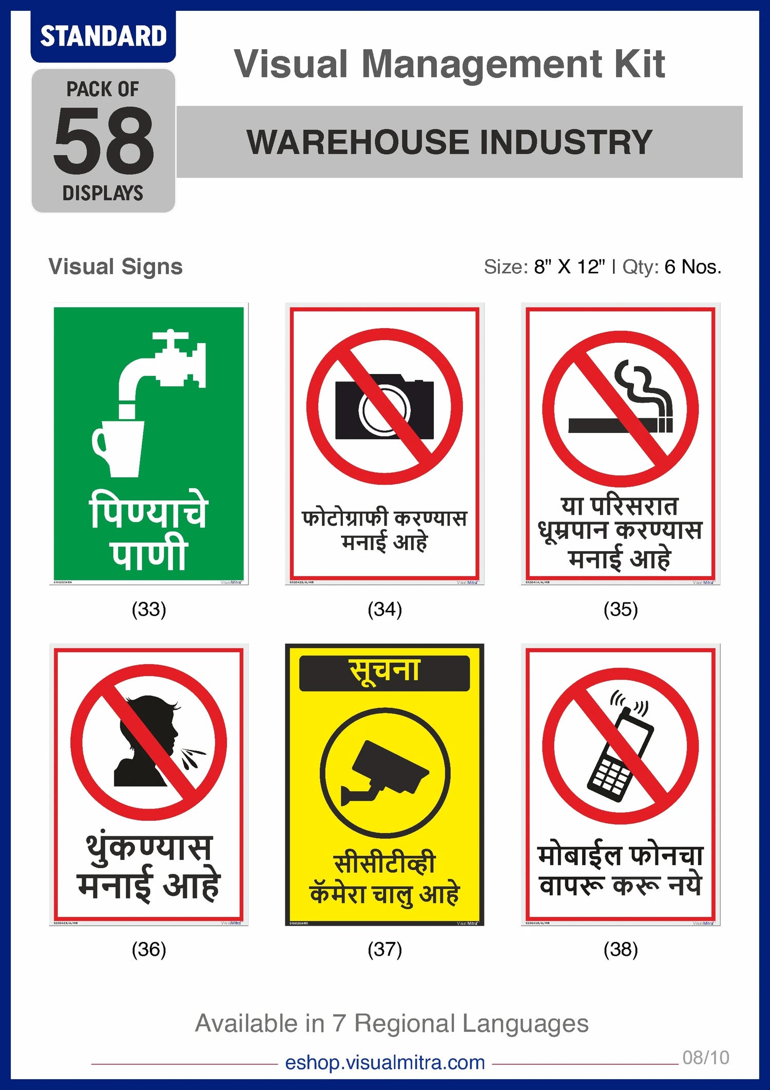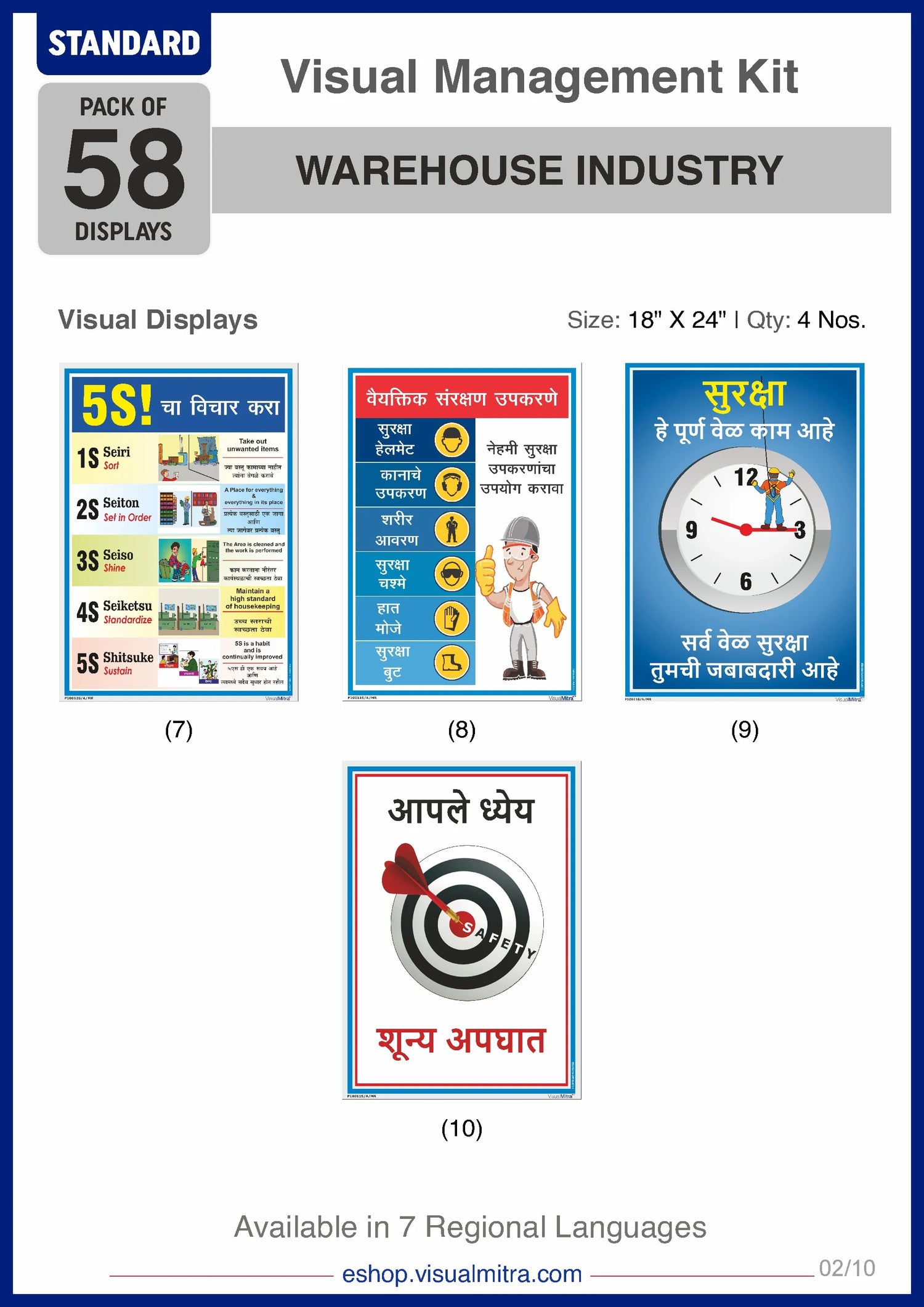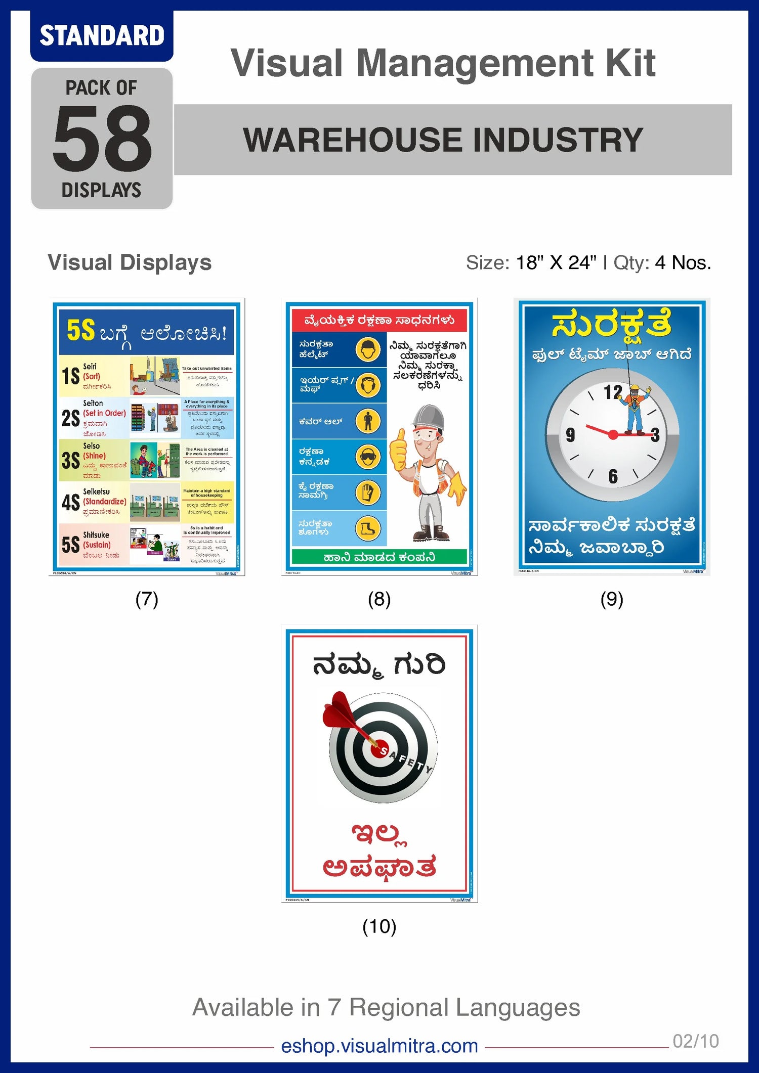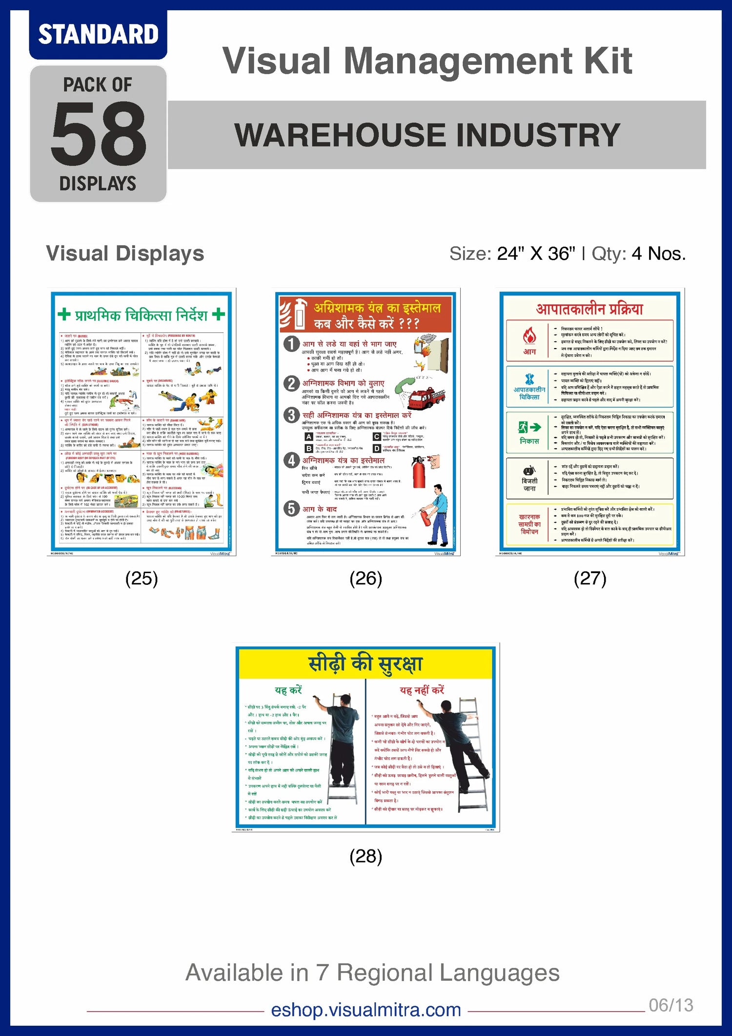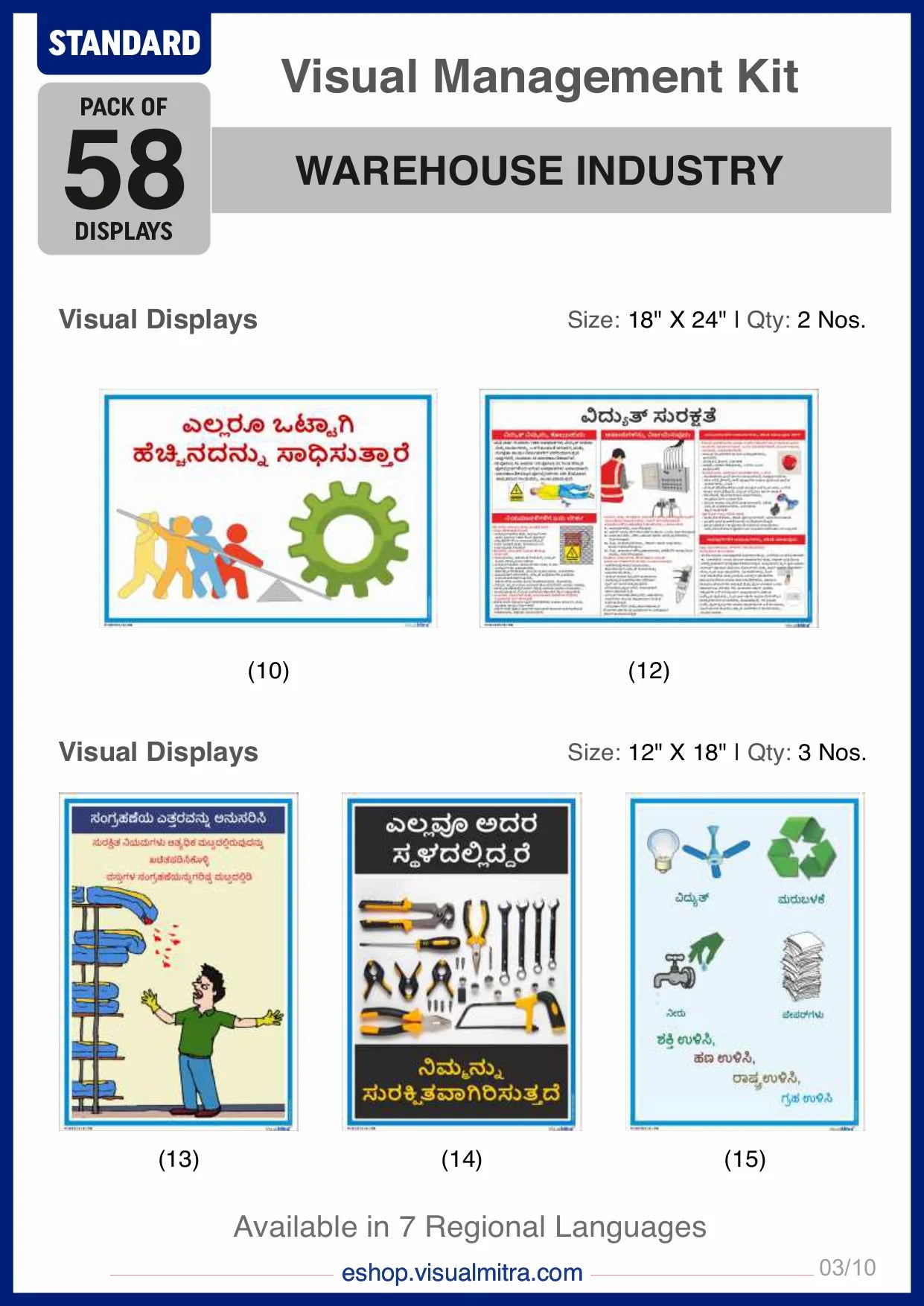 - Standard Coverage: With 59 visual management displays covering a broad range of visual management needs, the Standard Kit provides a complete solution for any warehouse facility.
