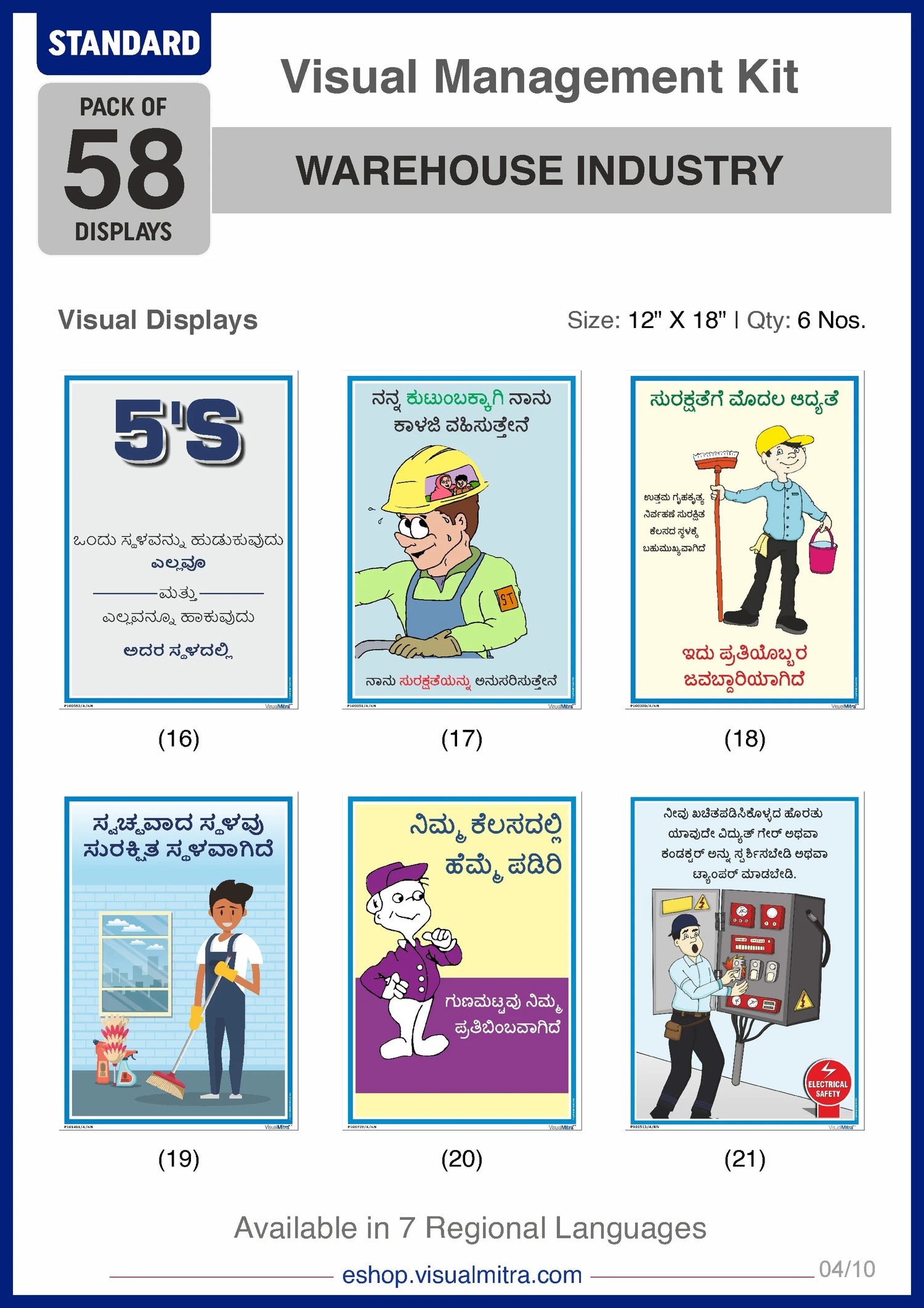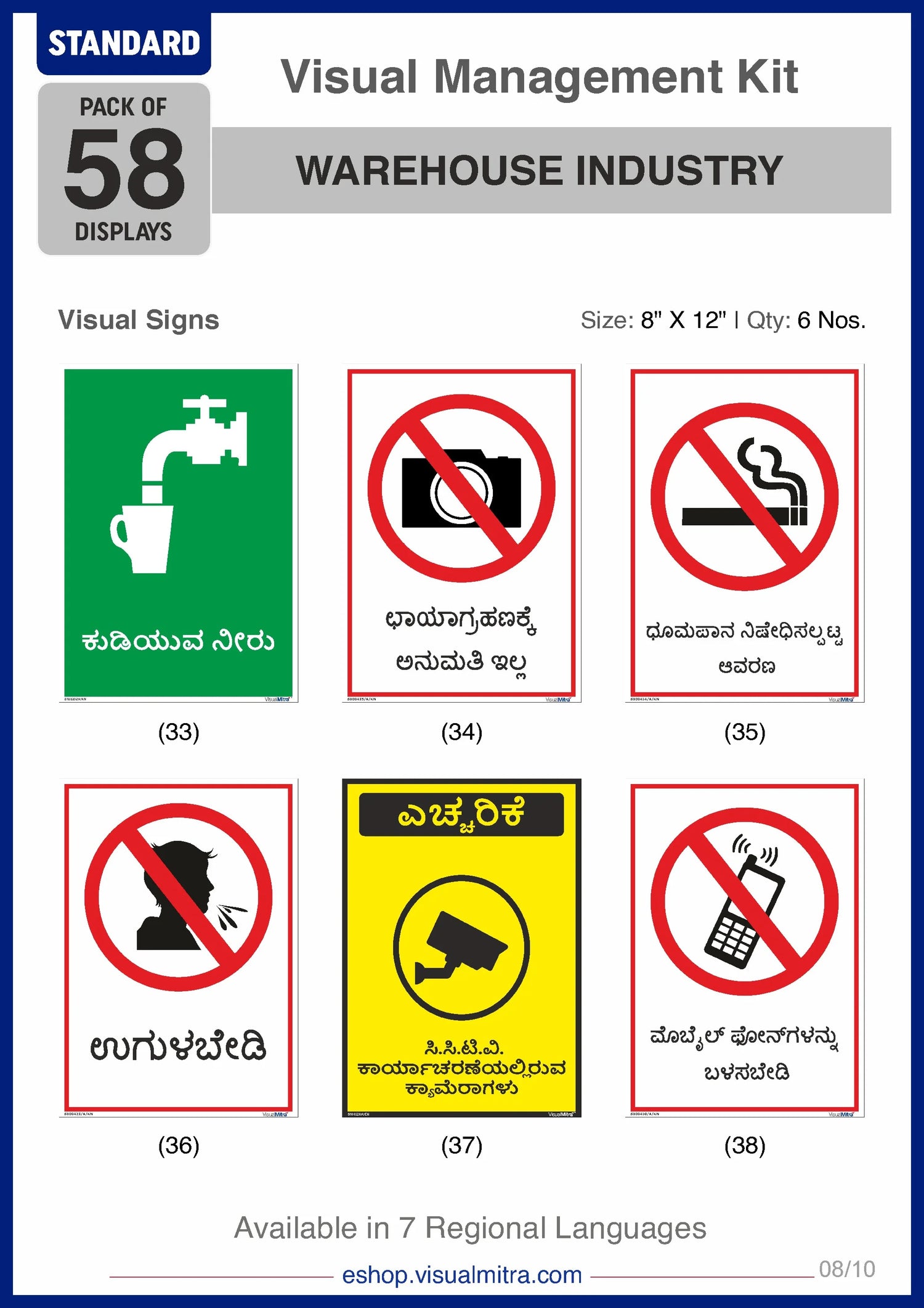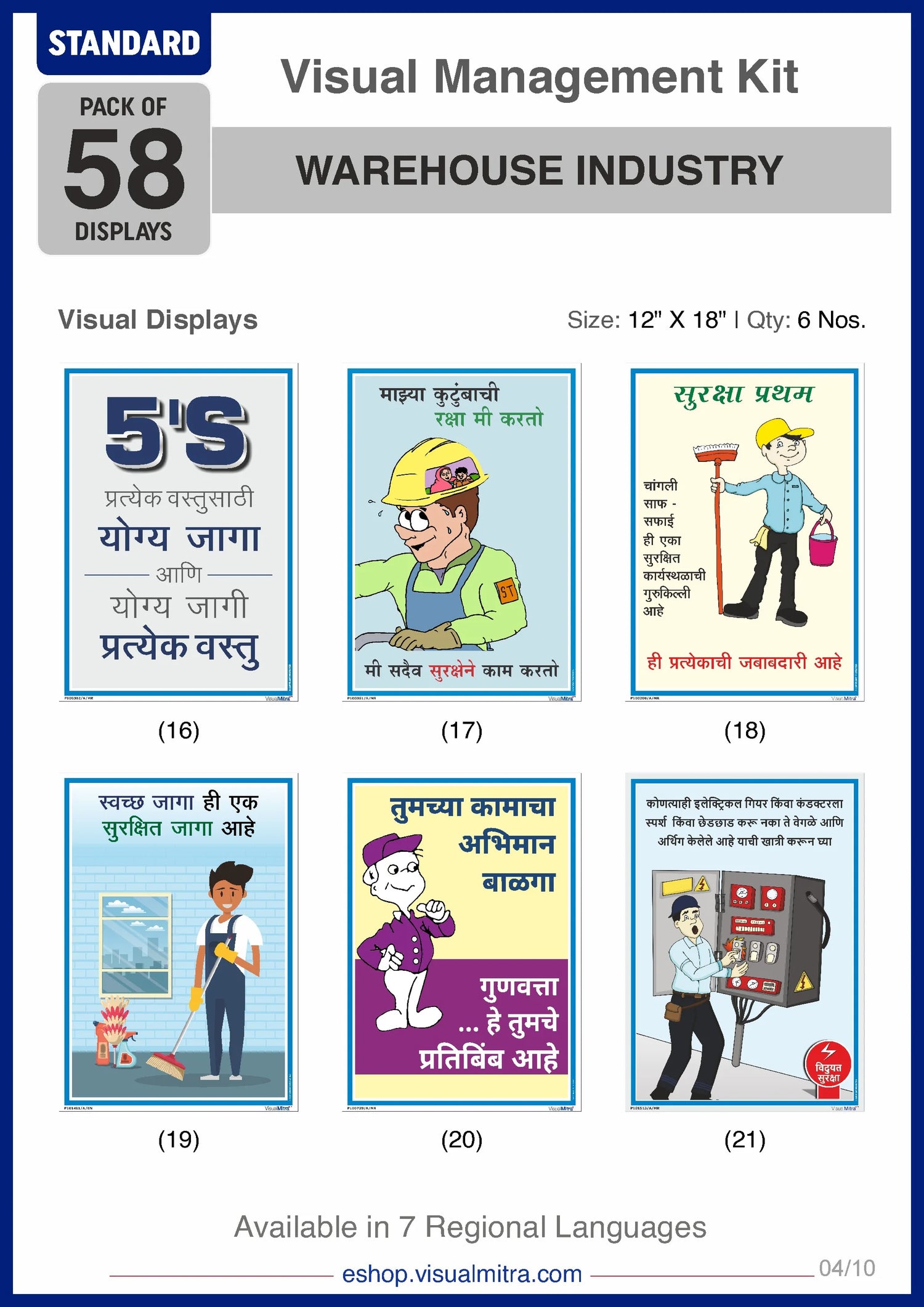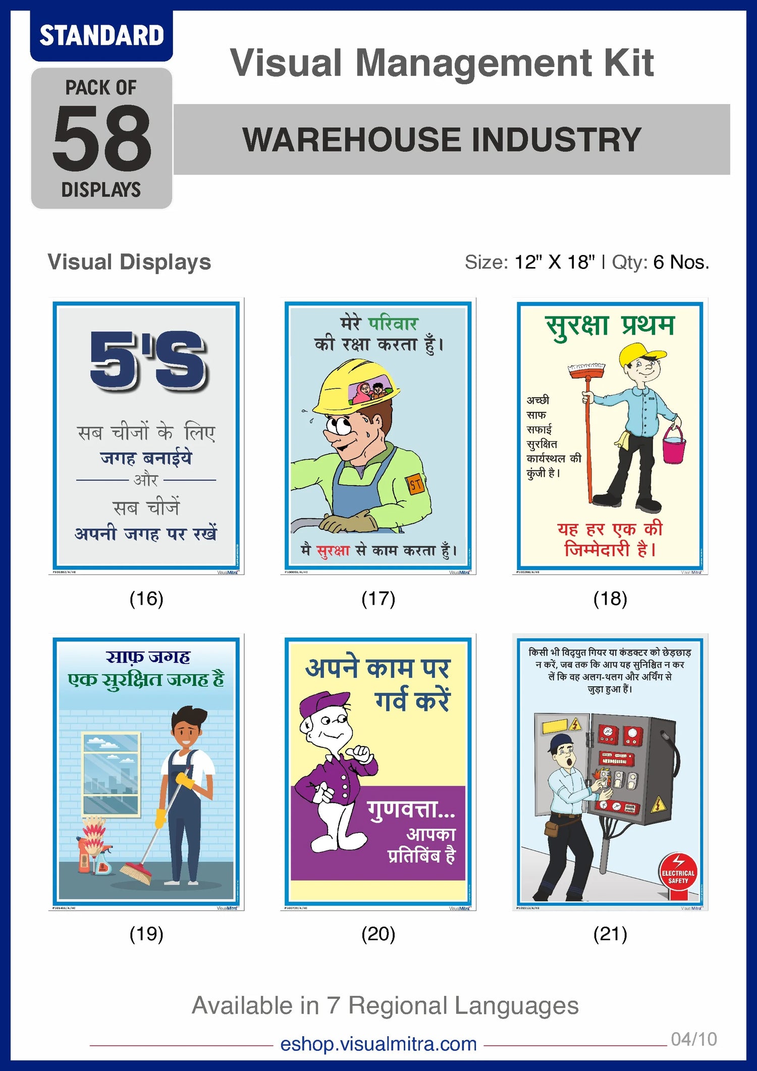 - Standard Coverage: With 59 visual management displays covering a broad range of visual management needs, the Standard Kit provides a complete solution for any warehouse facility.